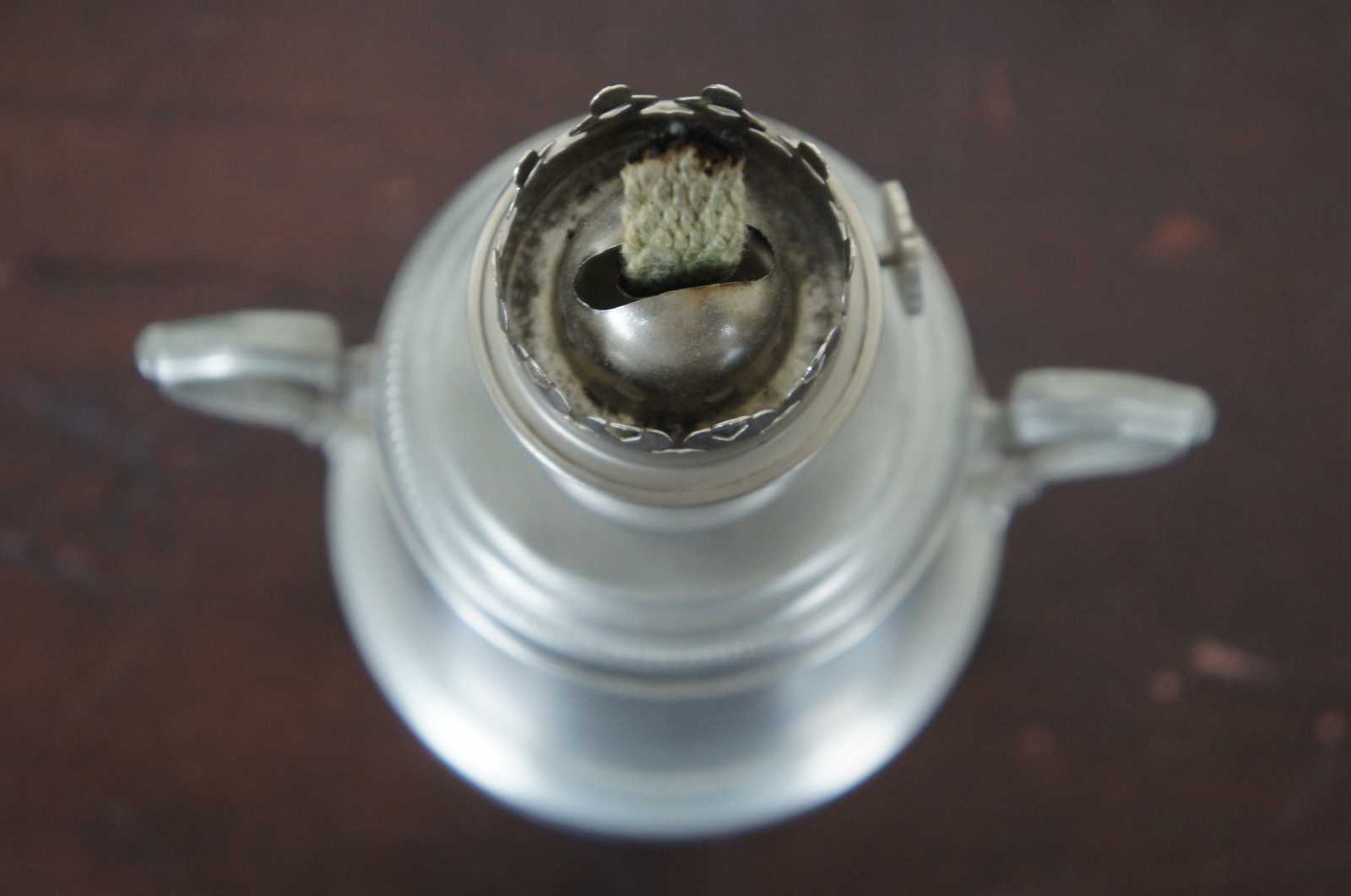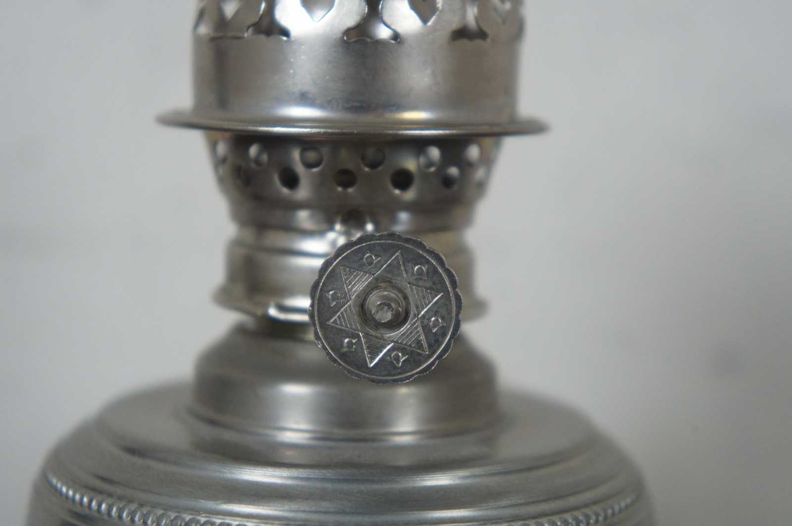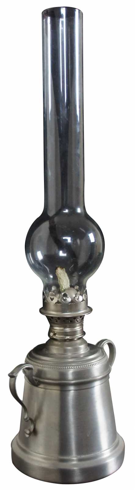 International Silver Company pewter GWTW pewter oil lantern with hurricane glass shade.