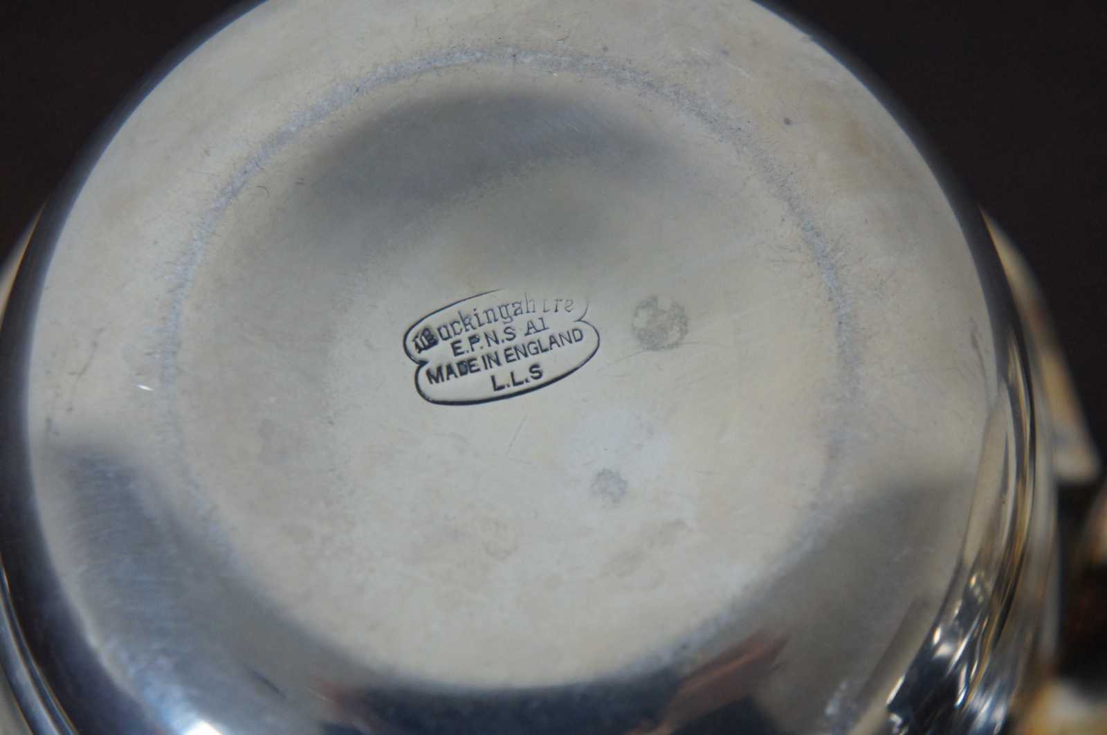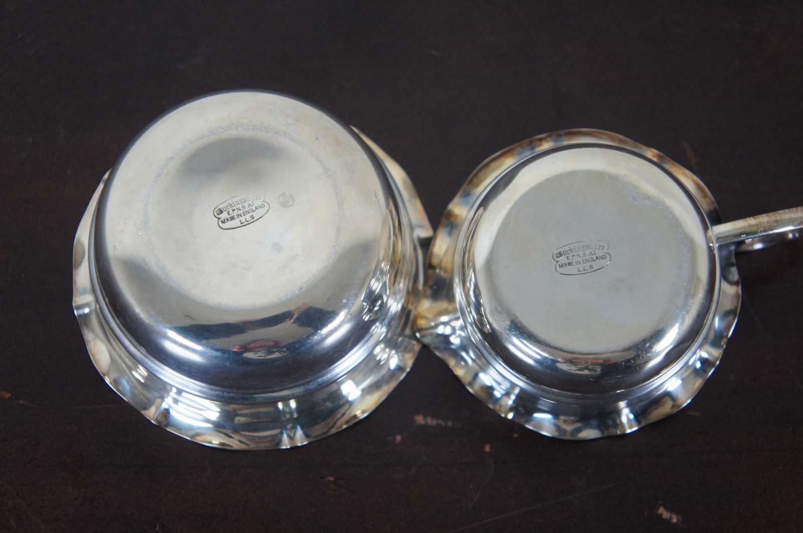 Buckingshire silver plated cream & sugar set with stand / caddy. Marked at base Buckingahire EPNS A1 Made in England L.L.S.