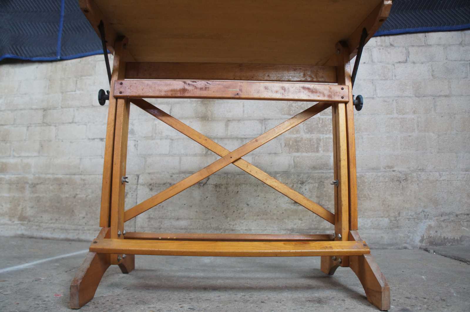 Adjustable drafting table by Hamilton. Made from hardwood with iron hardware.