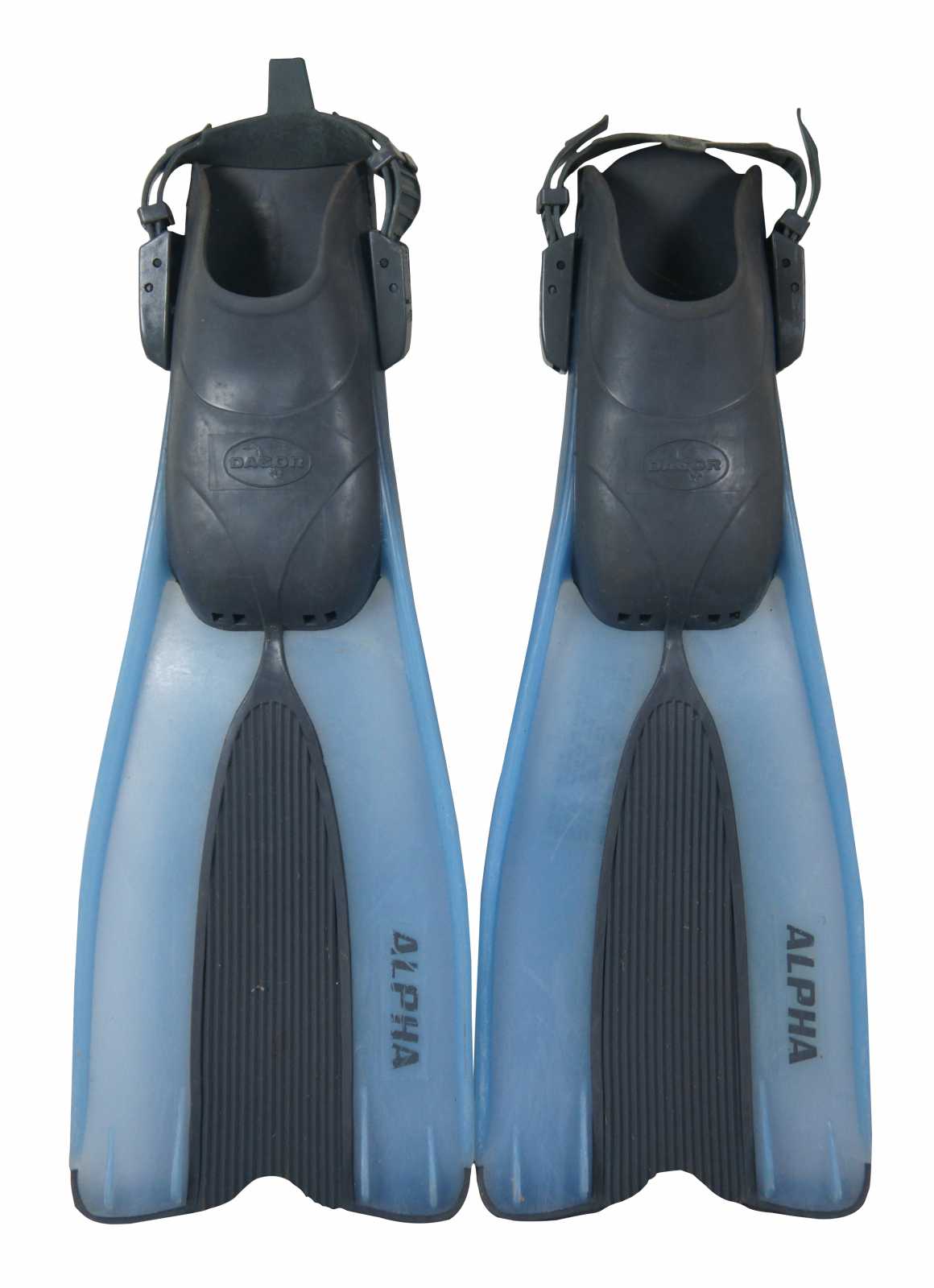 Scuba or snorkel gear: Dacor Integra Goggles, Fathom Zip Up Water Shoes, Dacor Alpha Swim Fins. Great for scubba diving or snorkeling.