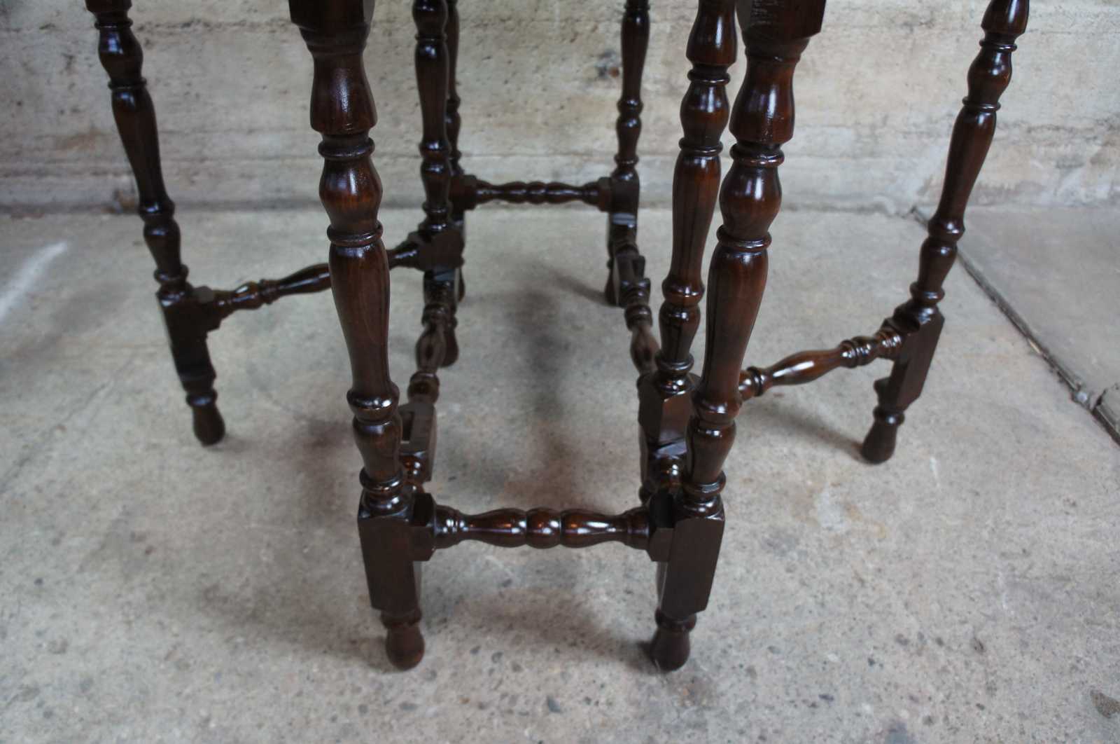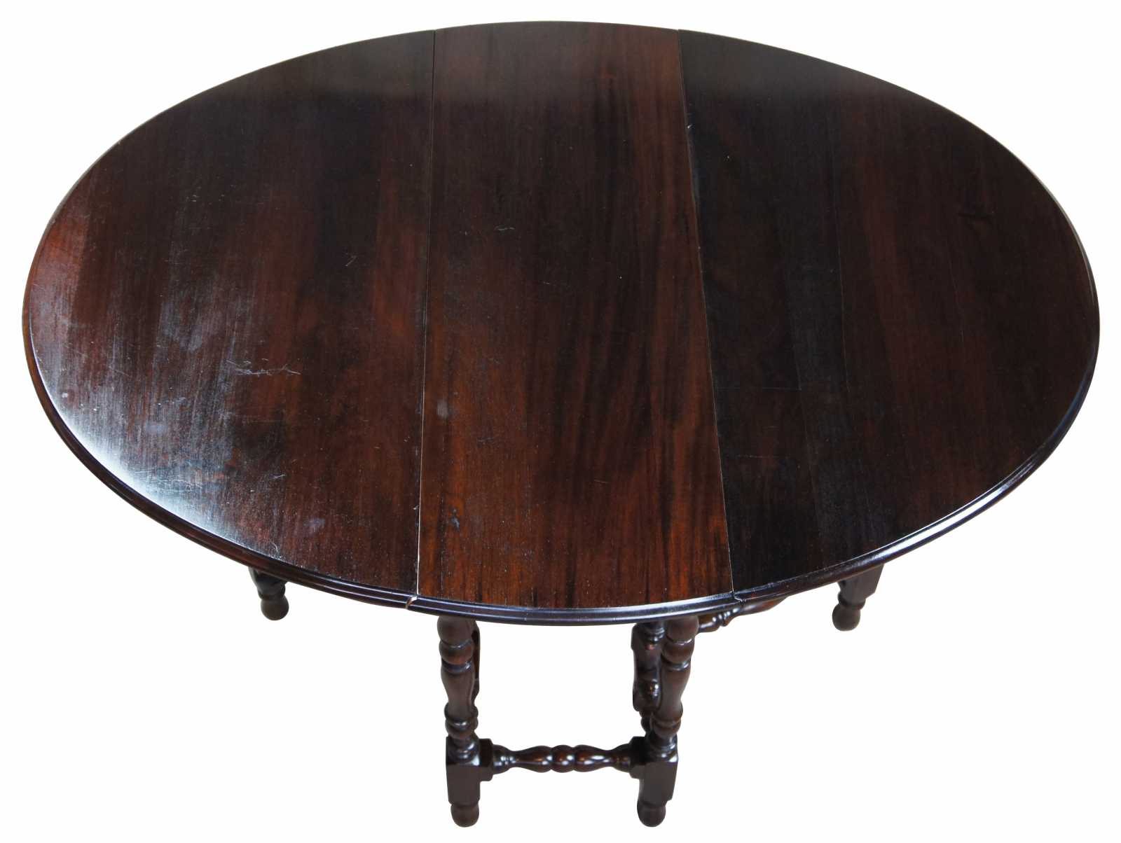 Early 20th century solid walnut drop leaf or gateleg table with drawer. Features turned supports in William & Mary style.