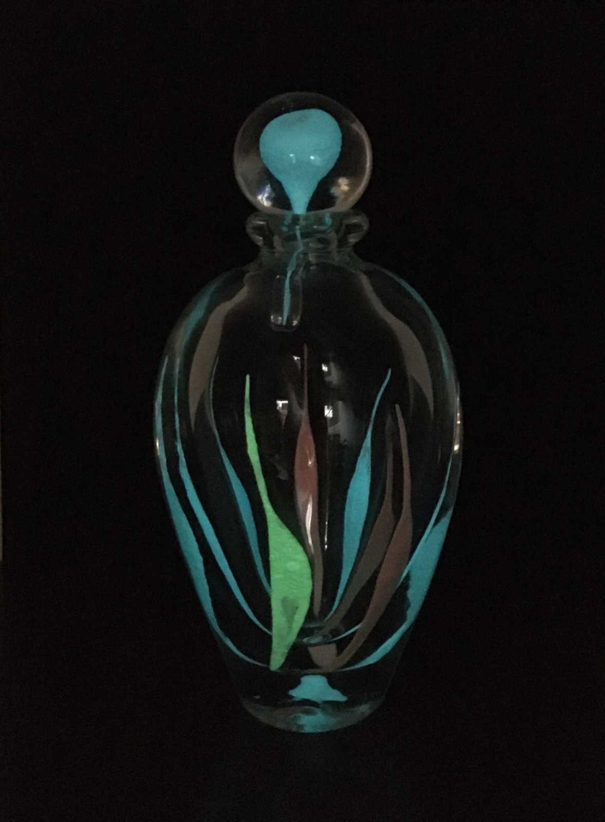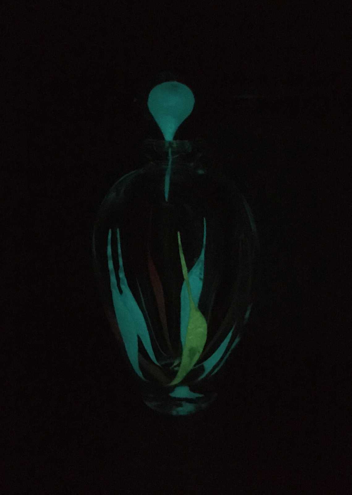 Glow in the dark purfume bottle or vase by JCN. 1943– Born in Antibes, France in 1943, Jean Claude Novaro is a world-renowned glassblower. His works, once small animals being sold to tourists, are now in galleries, museums, and private collections throughout the world.