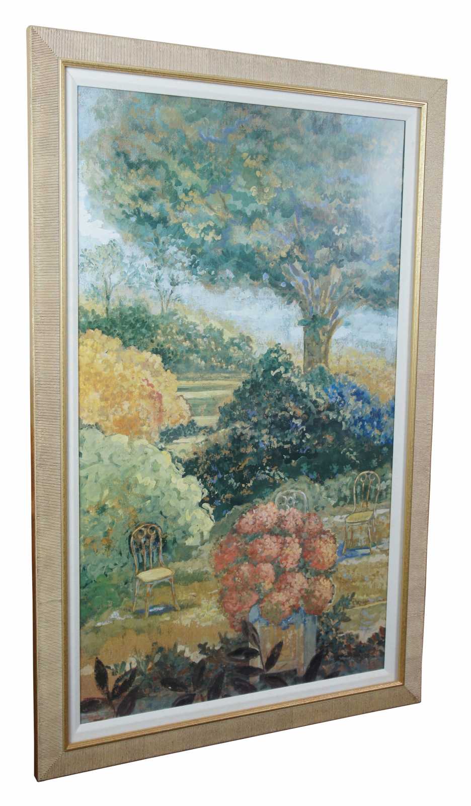 Impressionist style garden landscape. The name Rebelle and part of a year (19-) can be seen in one corner.