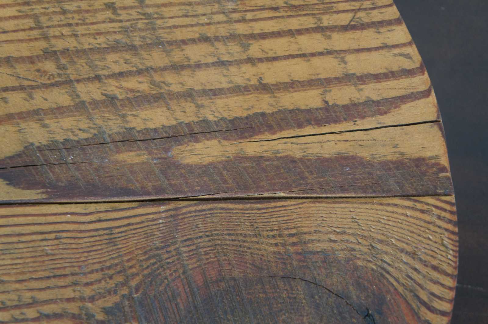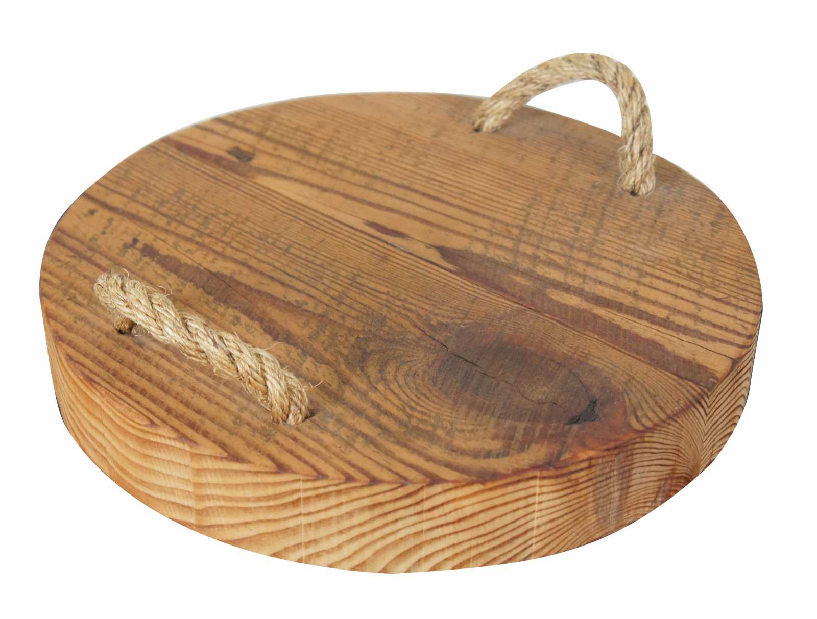 Large reclaimed pine circular cutting board butchers block with rope handles. Reclaimed from a mid 19th century building in Dayton, Ohio.