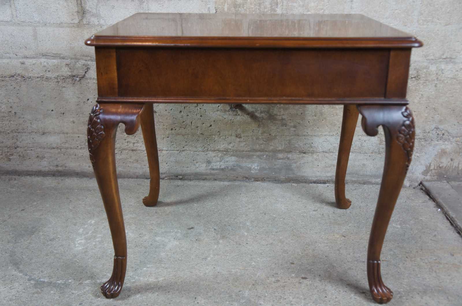 Circa 1980s chippendale style side table by Drexel. 131-320-3 part of the Devoncourt collection, made from mahogany with banding around the top and scalloped legs.