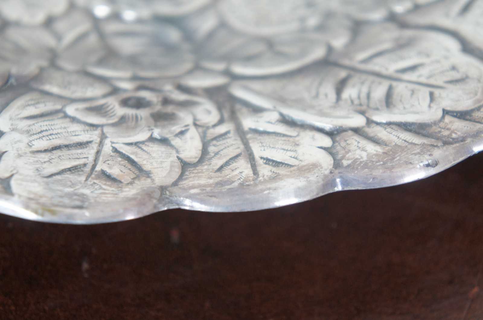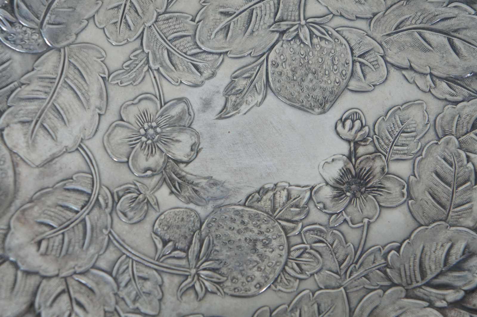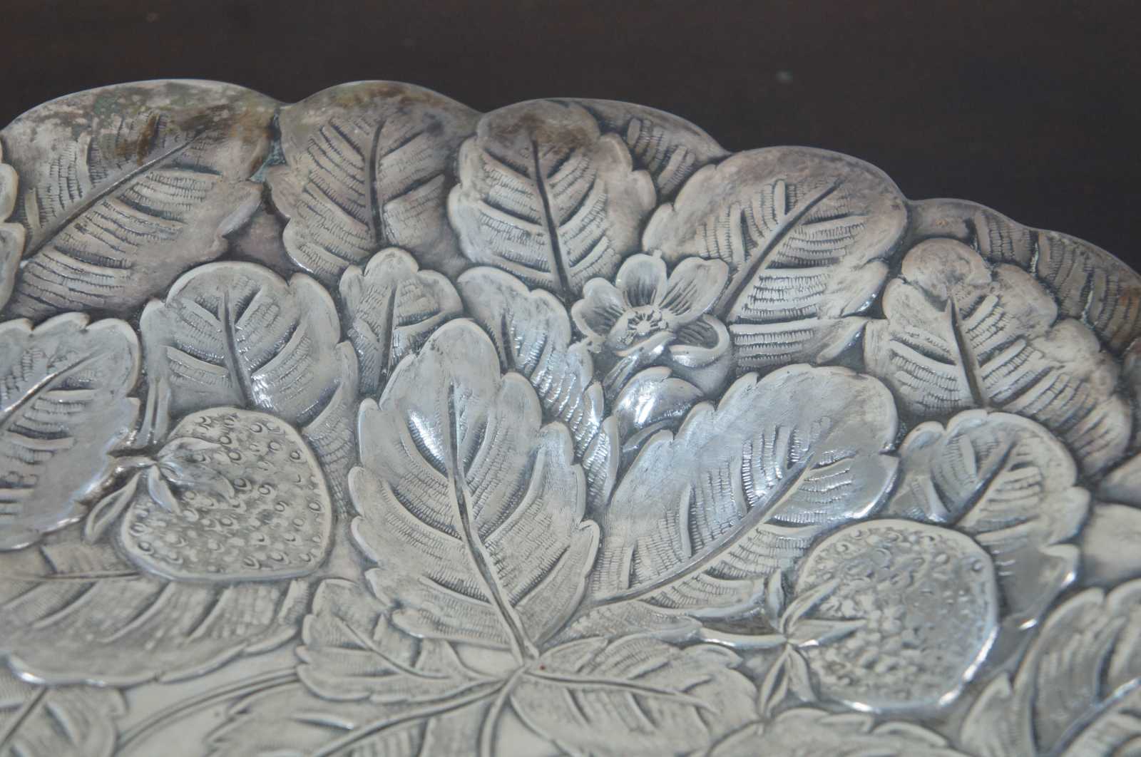 Reed & Barton repousse silverplate hollowwware embossed fruit / strawberry patterned centerpiece, serving tray or charger.