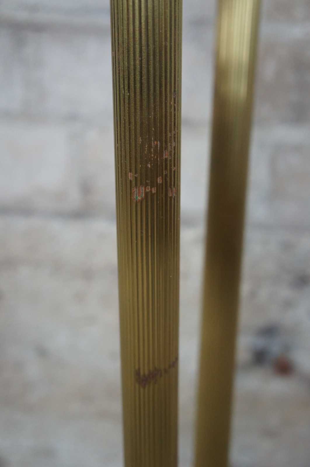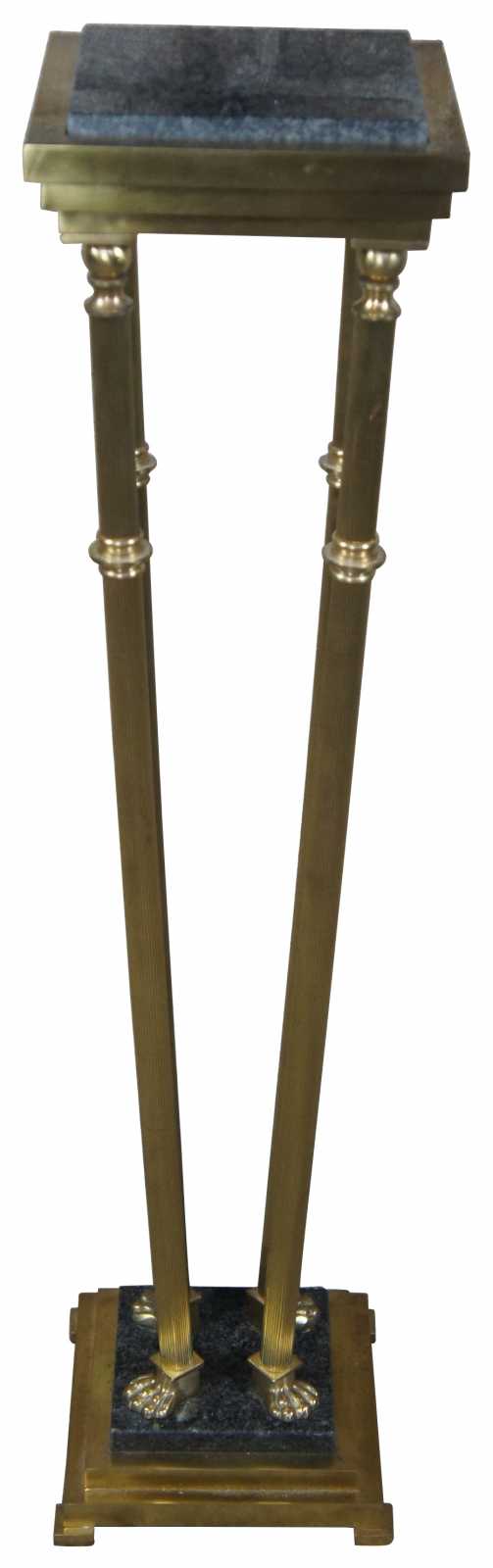 Late 20th century Italian regency style brass and granite plant stand. Features long fluted legs, tapered to paw feet.