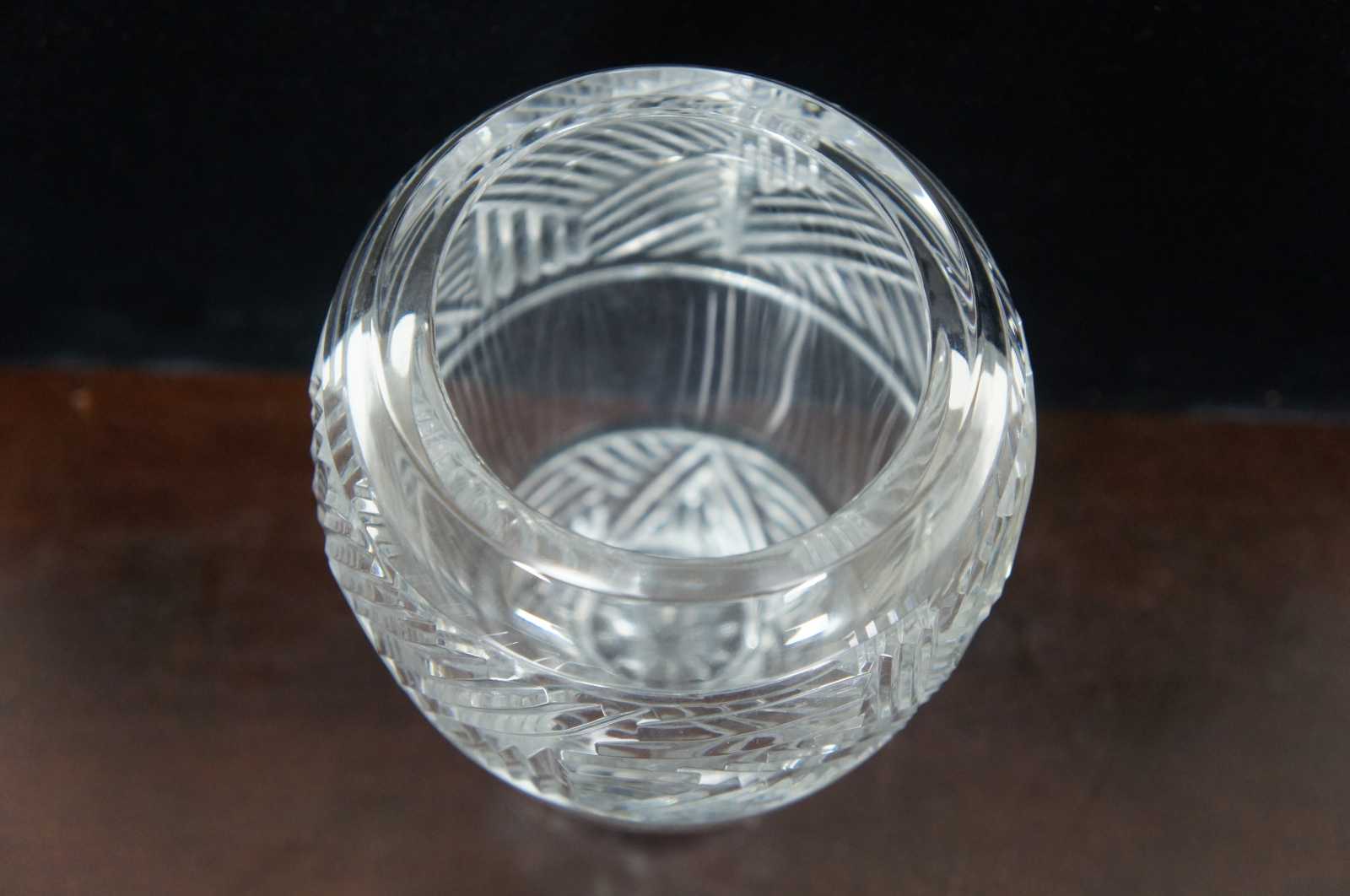 Villeroy & Boch cut crystal flower vase in the Aspen crosshatch pattern.