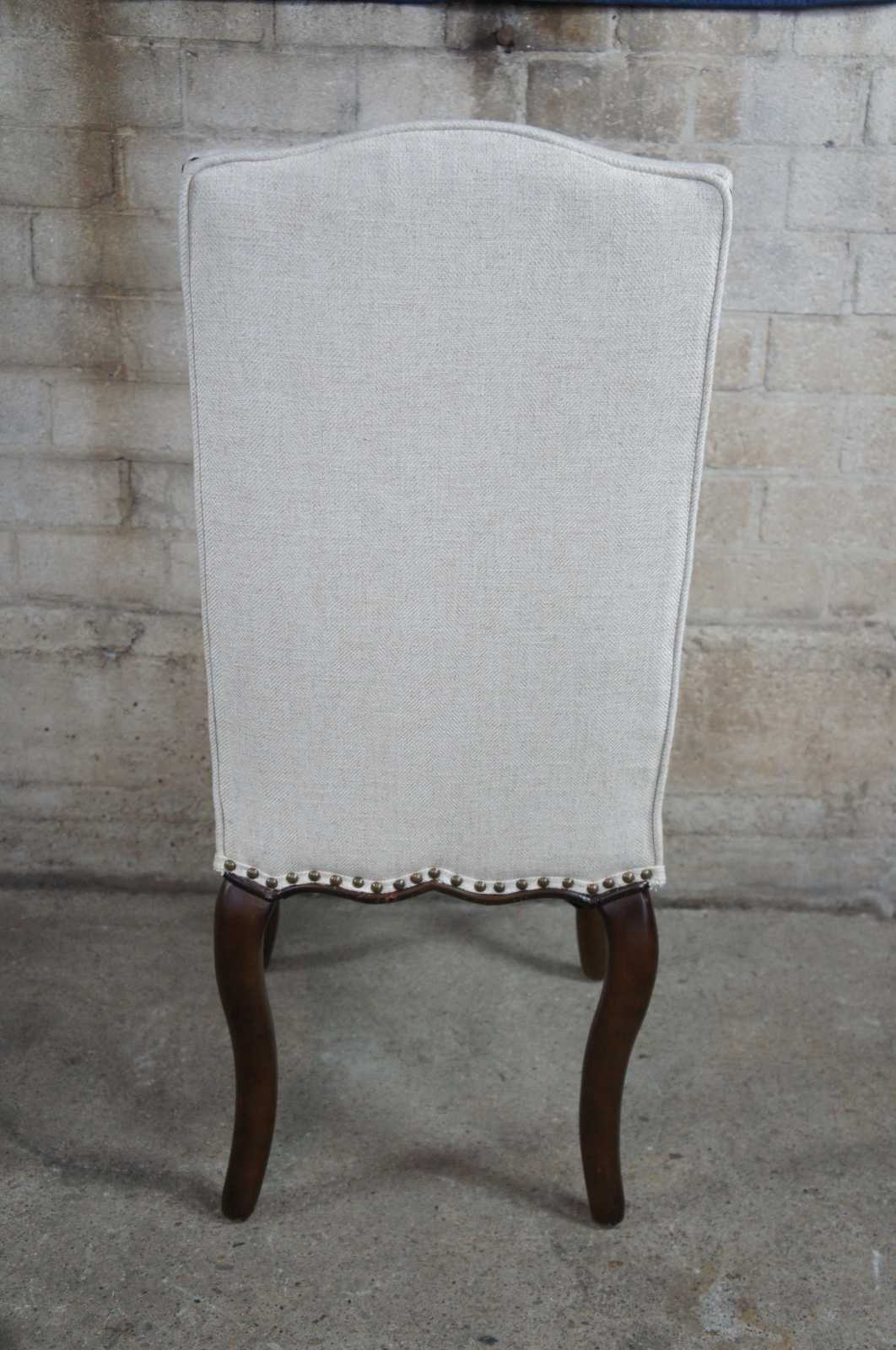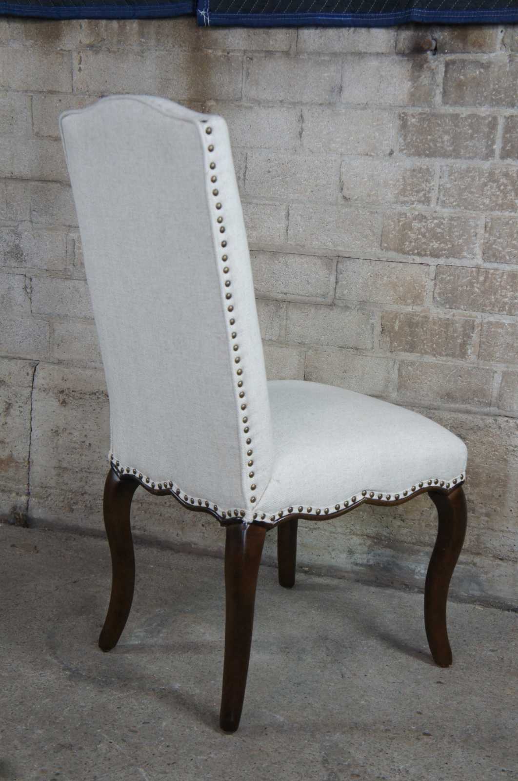 The classic elegance of Louis XV style meets up with relaxed contemporary detailing. A graceful camelback headrest and coquettish cabriole legs belie sturdy hardwood construction. Features a scalloped apron with decorative nailhead trim. Discontinued.