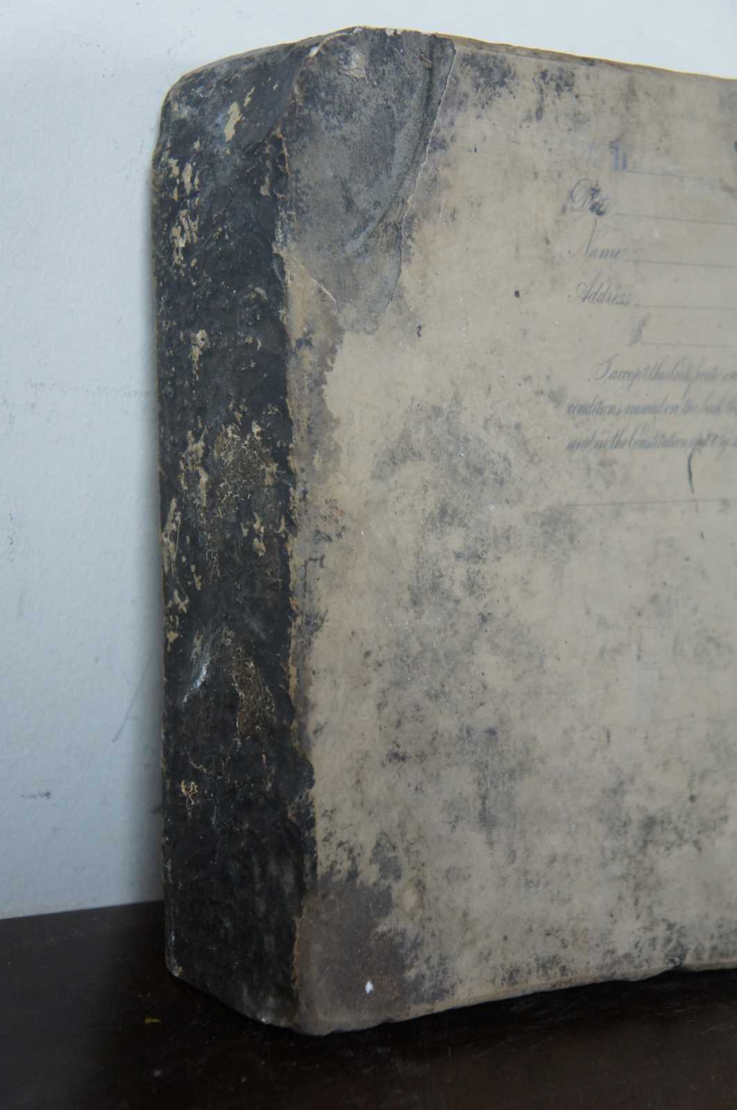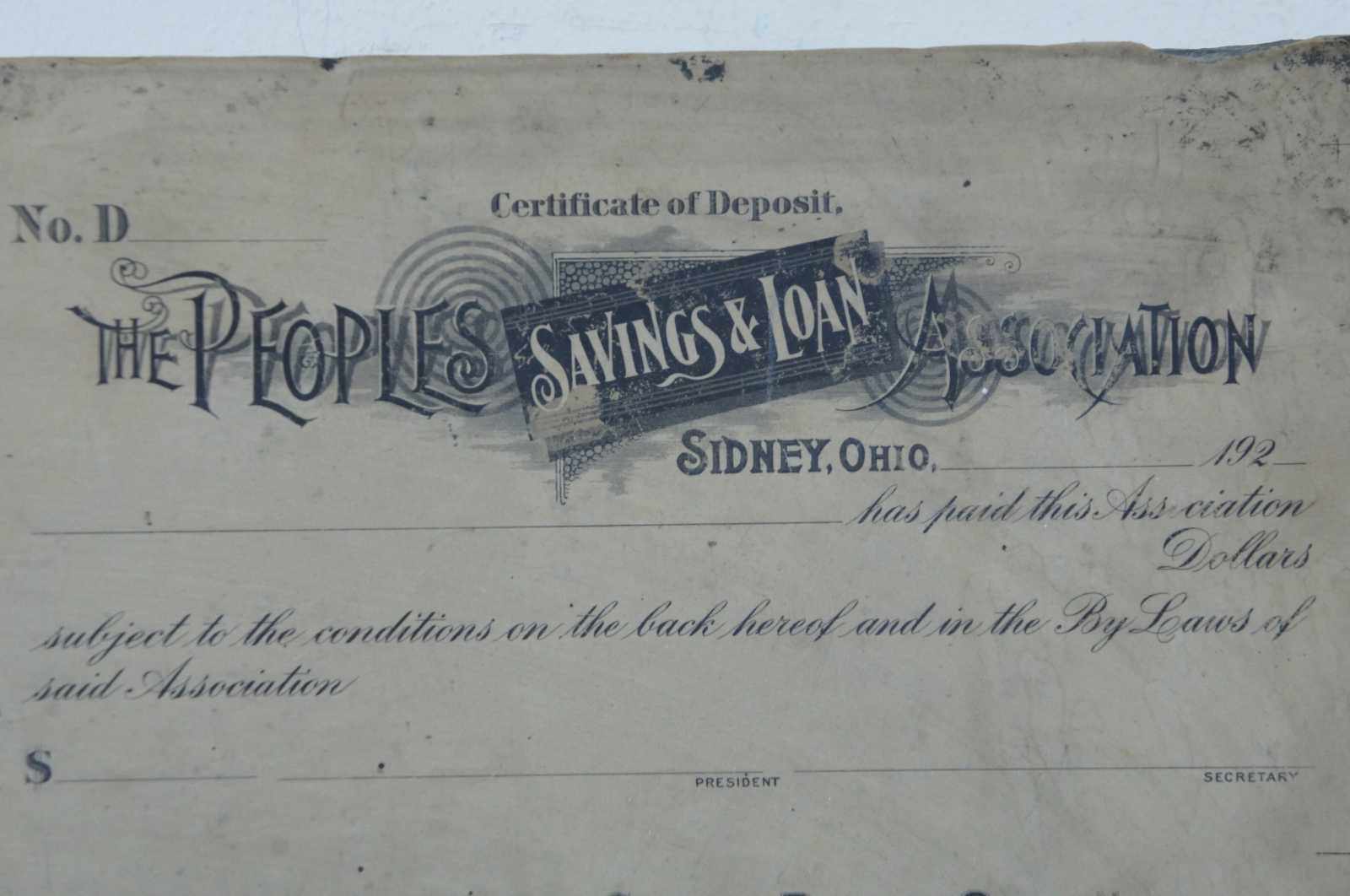Antique Lithography Printing Block – Side A: Certificate of Deposit The People’s Savings & Loan Association / Time Certificate of Deposit The People’s State Bank Co. Side B: Personal Check Merchant’s National Bank/The First National Bank. Very heavy.