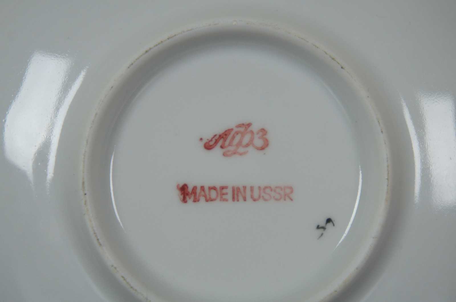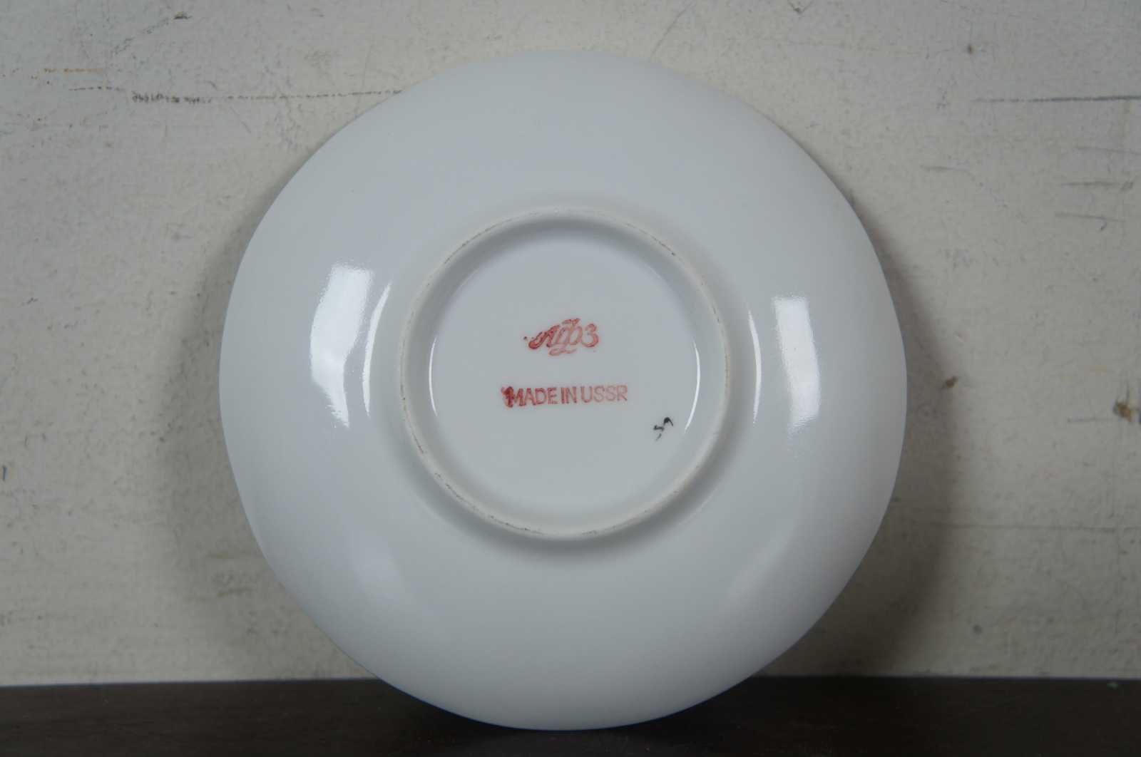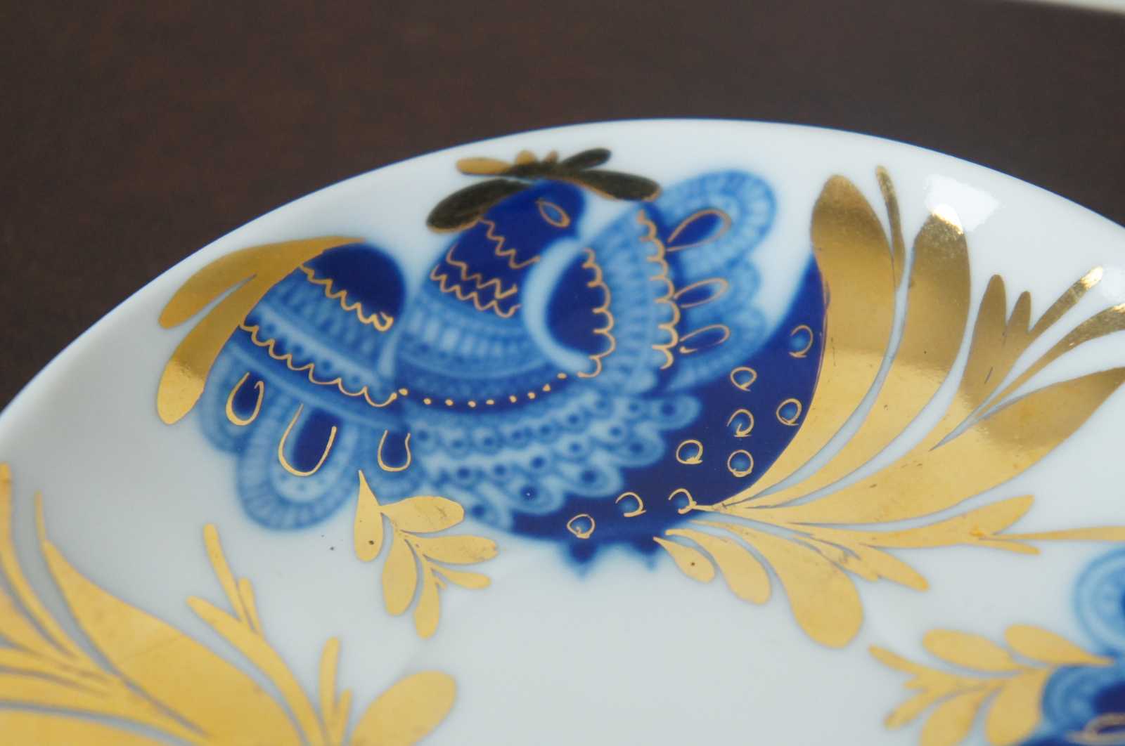 Lomonosov Russian Imperial porcelain, cobalt blue and 22kt gold teacup and saucer in the Golden Garden pattern.