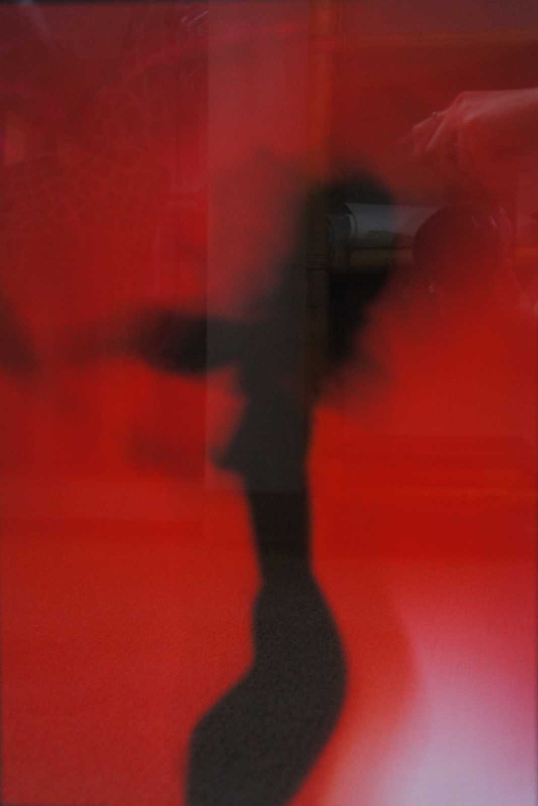 Three red and black color photographs featuring abstract silhouette figures dancing.