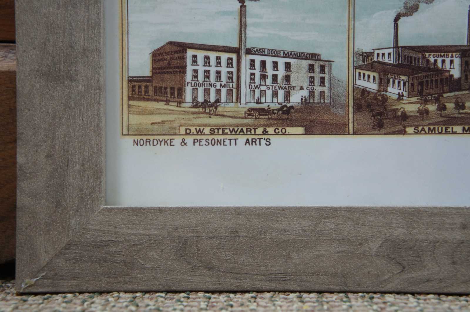 Birds Eye View of Dayton Ohio 1870 Colored Print Cityscape Map Framed Aerial 38"