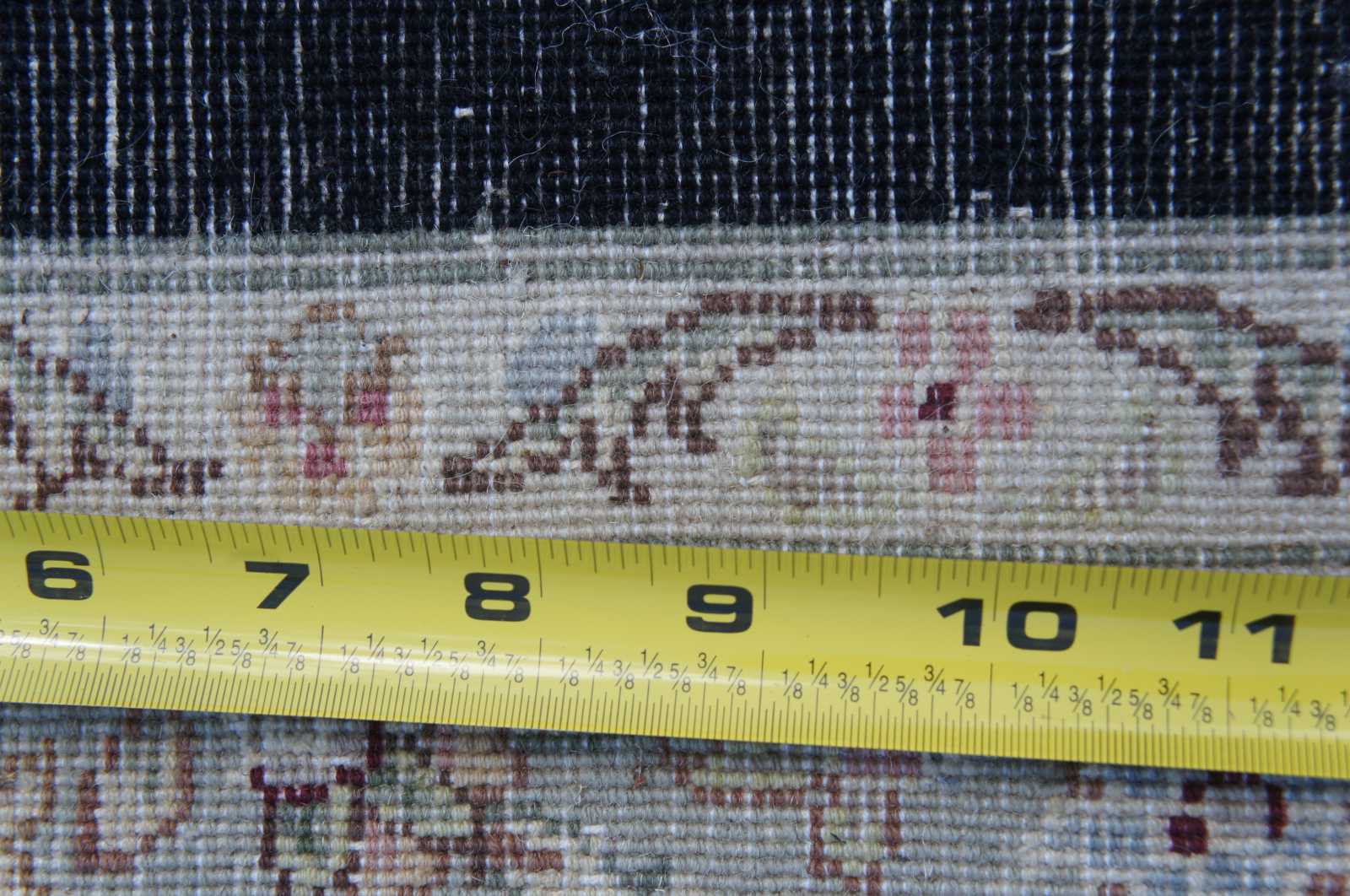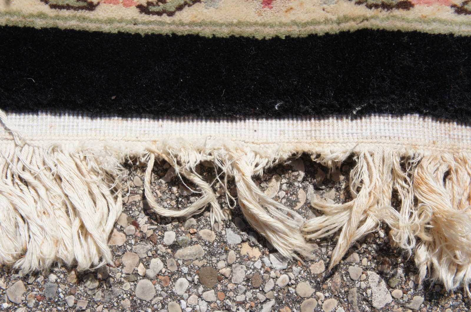Missing fringe, some staining, wear commensurate with use in a dining room, see pictures.