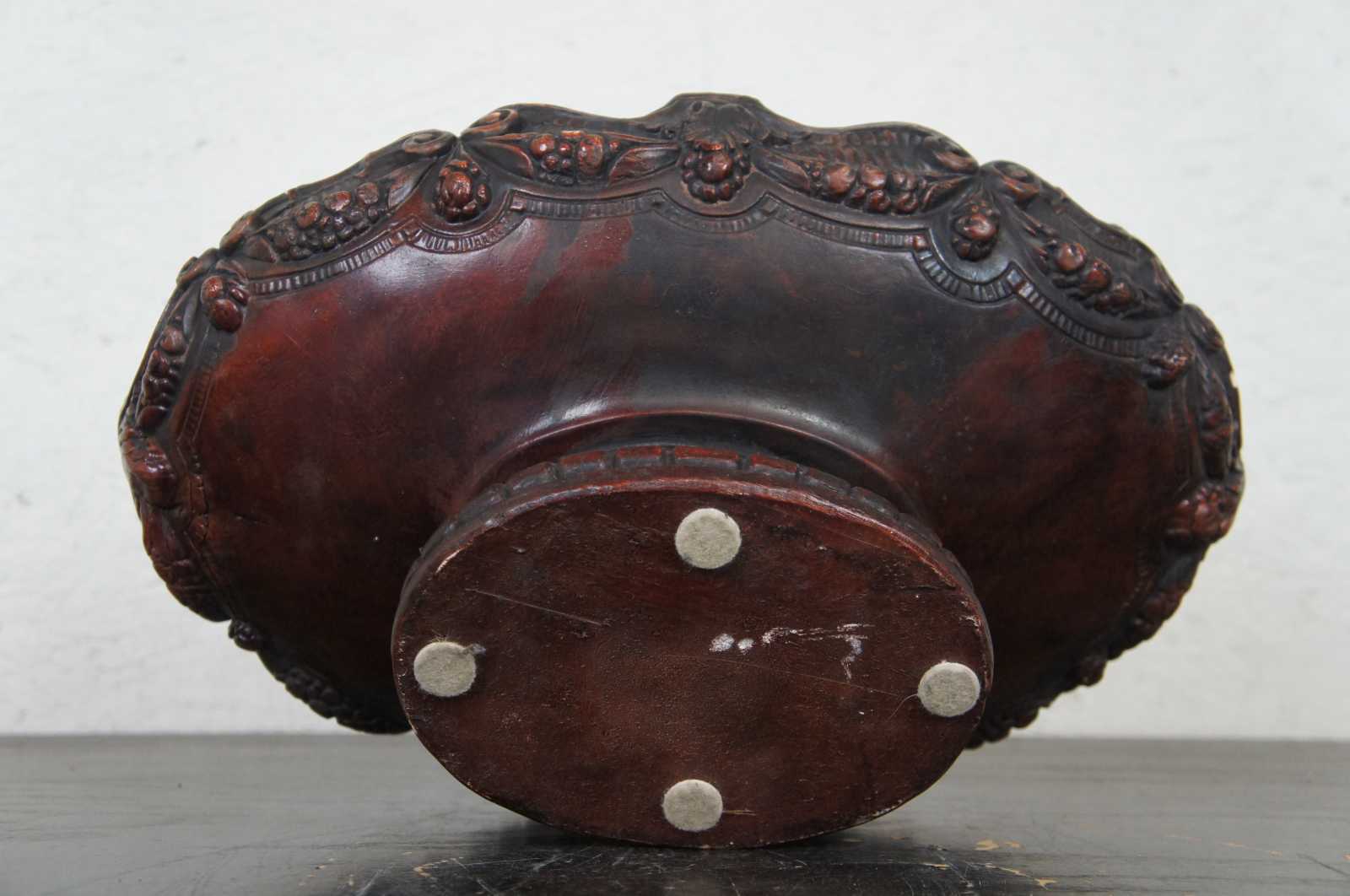 Brown ceramic fruit bowl with a rustic Italian styling.