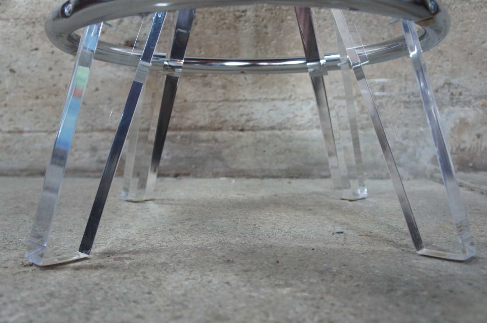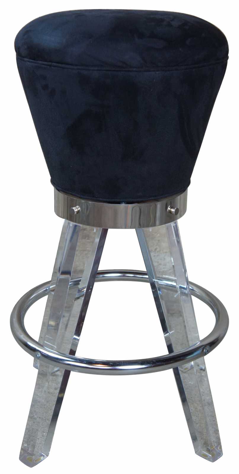 H. (Haziza) Studio gum drop acrylic barstool features a plush and comfortable seat. The backless design is a timeless classic, bringing a modern look to a soda bar classic. Designed by Haziza. Counter height. Finsihed with black velvet cushion.