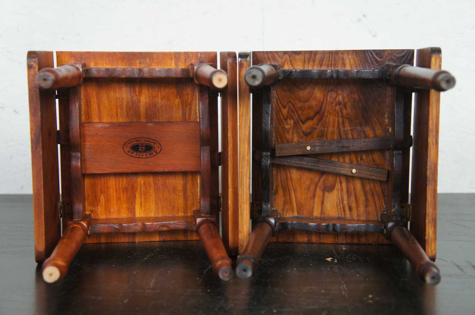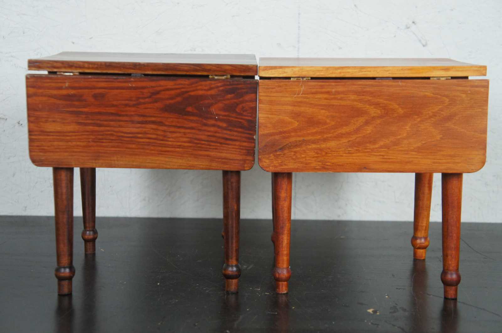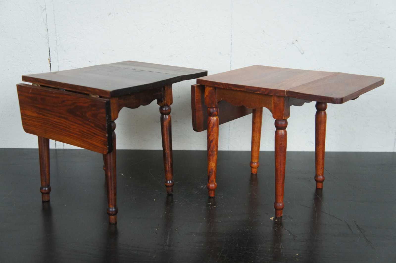 Set of two vintage matching drop leaf doll sized salesman sample tables, from American Heirloom Collection.