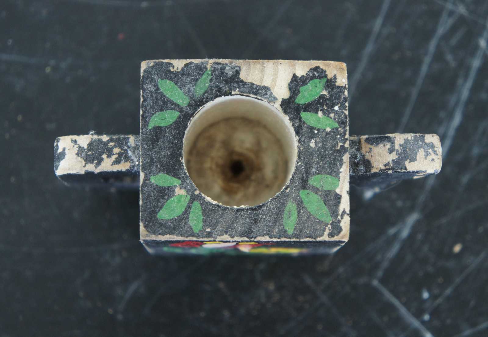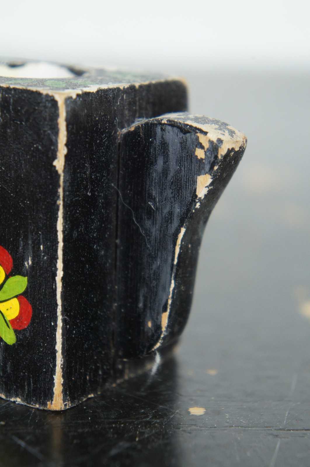 Vintage, hand painted, wooden teapot shaped toothpick holder.