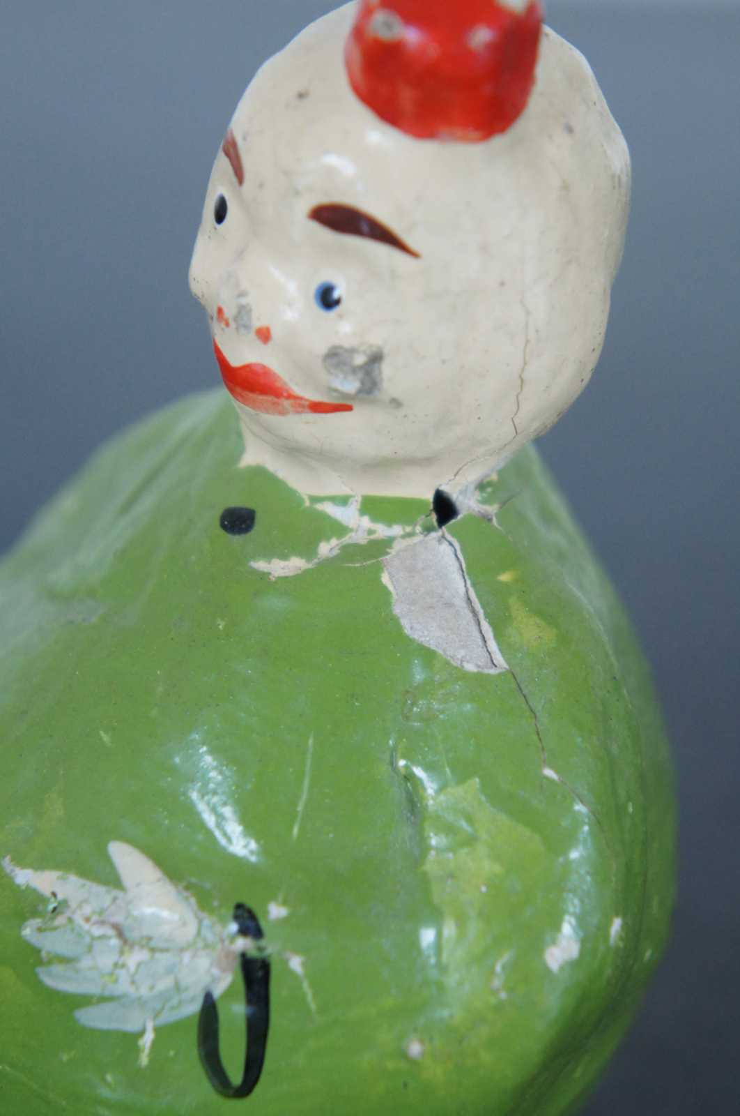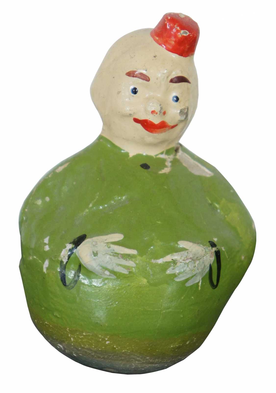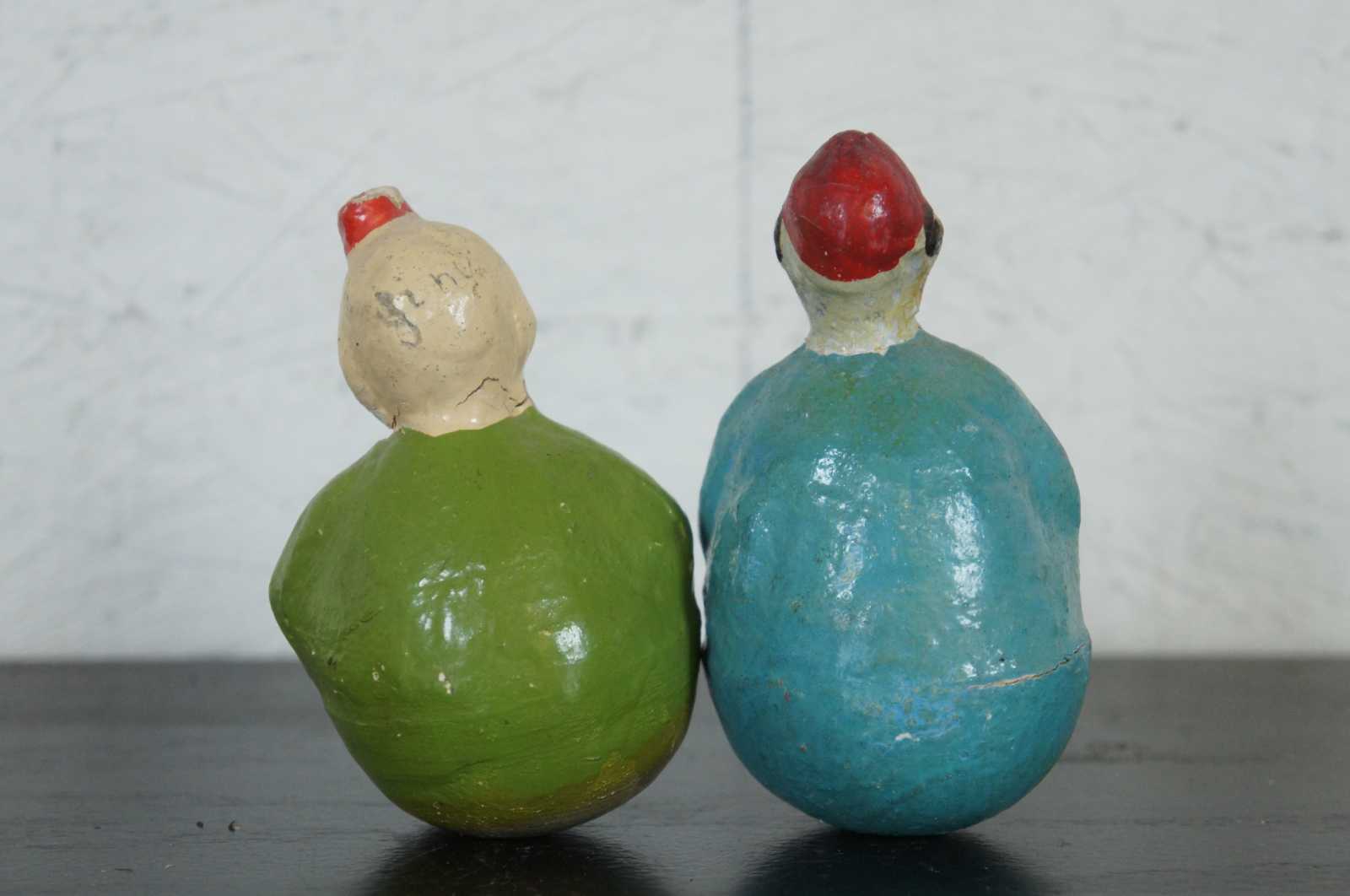 Two early 20th century roly poly paper mache clown toys.