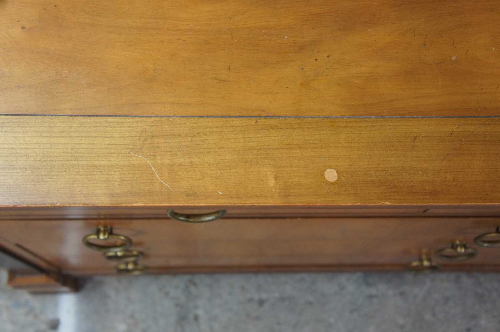 Circa 1960s Baker Furniture Neoclassical inspired chest of drawers. Made from Fruitwood with ebonized mounts along the outside, nine drawers and brass hardware.
