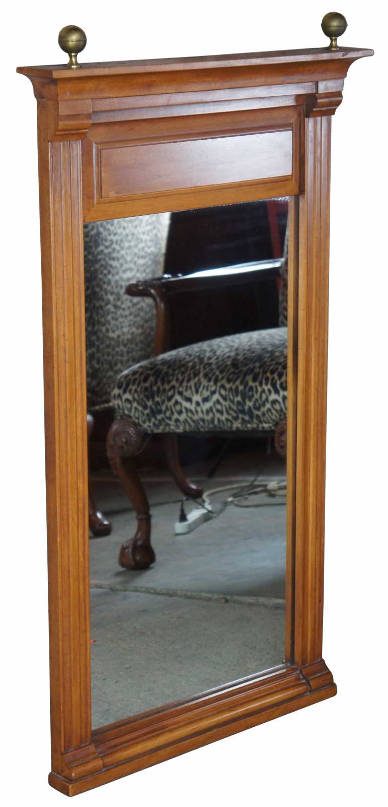 Circa 1962 Fruitwood wall hanging mirror by Baker furniture. Great for use along a dresser or on the wall. #7761.