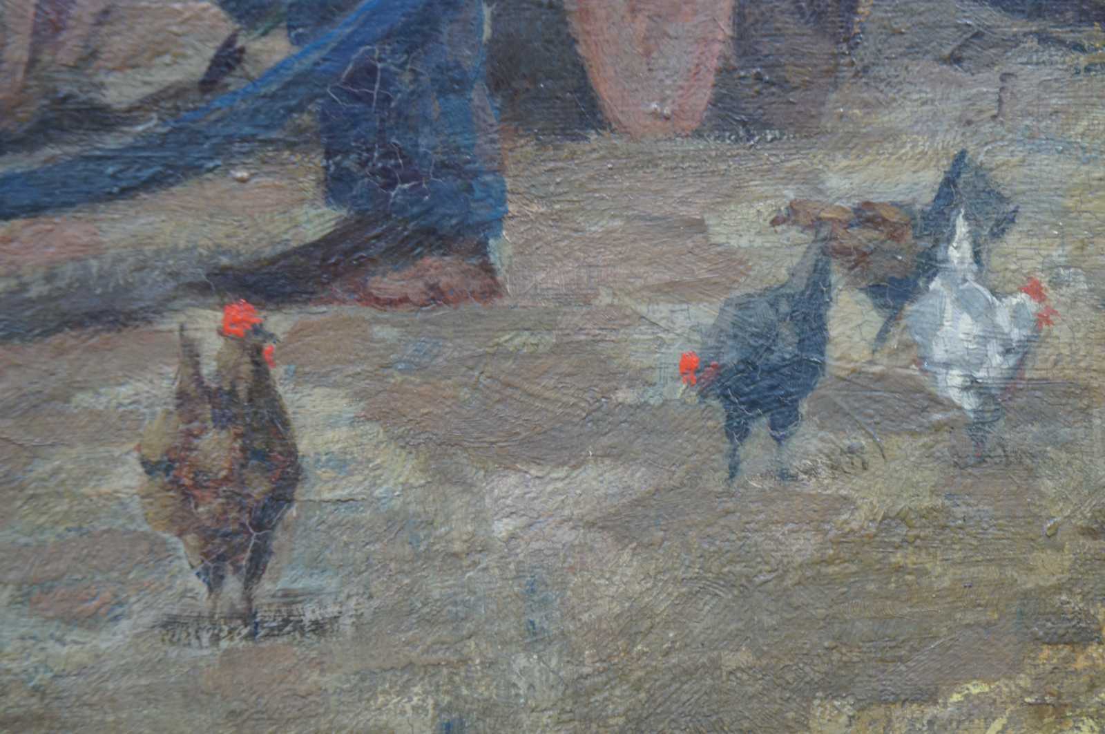 Circa 1910 original oil painting by German artist William Krause. Titled “Gemaelde Baurenhof” (original farm painting). William Krause (1875 – 1925) was active/lived in Germany. William Krause was known for landscape painting.