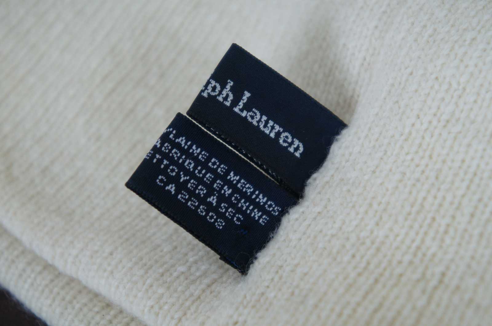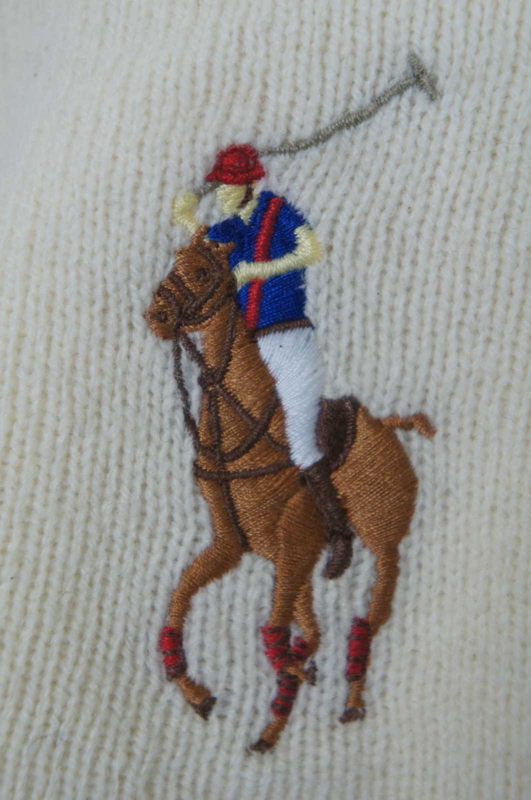 Polo Ralph Lauren 100% Merino wool knit hat, ivory with full color embroidered polo pony logo.