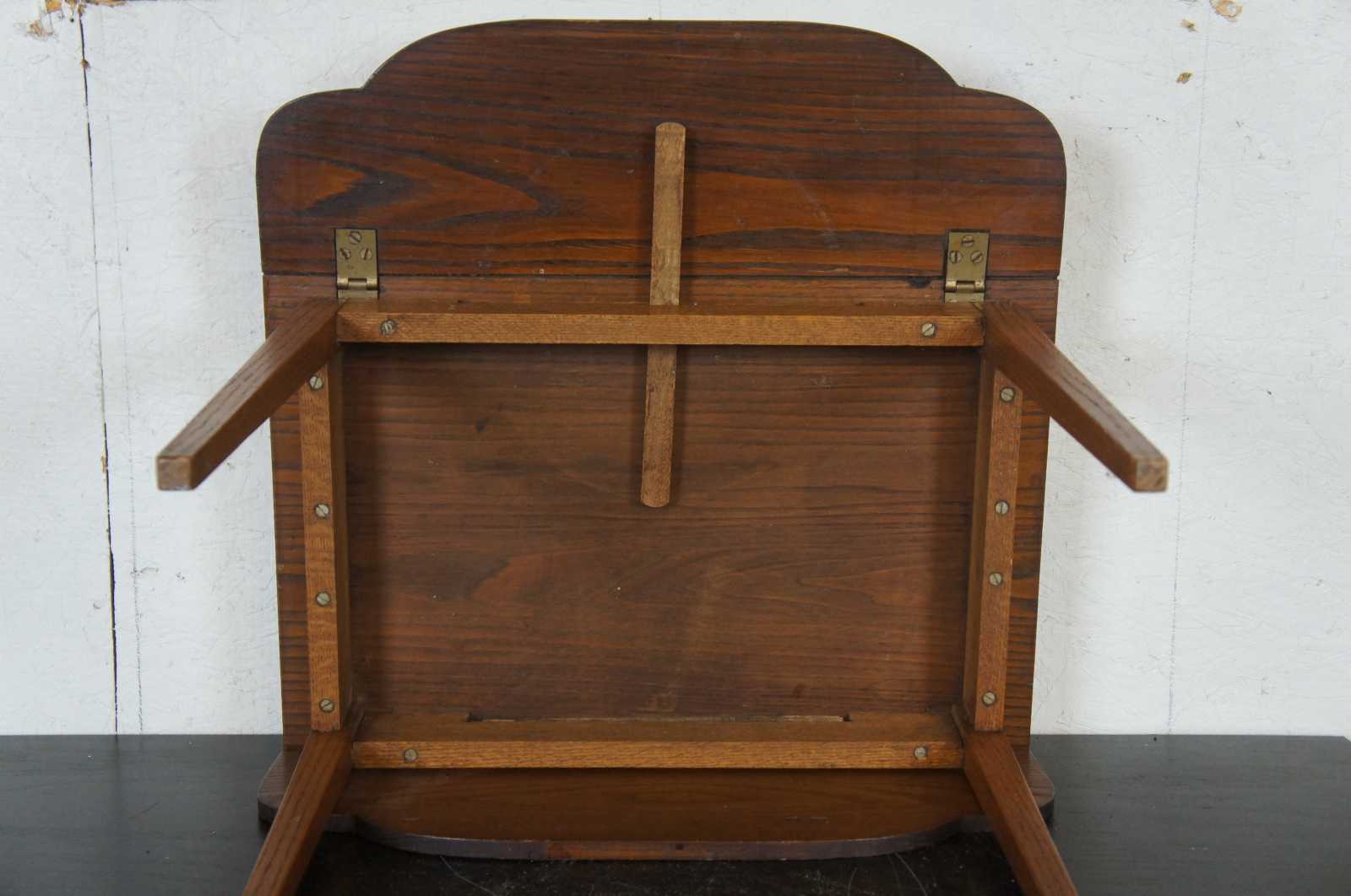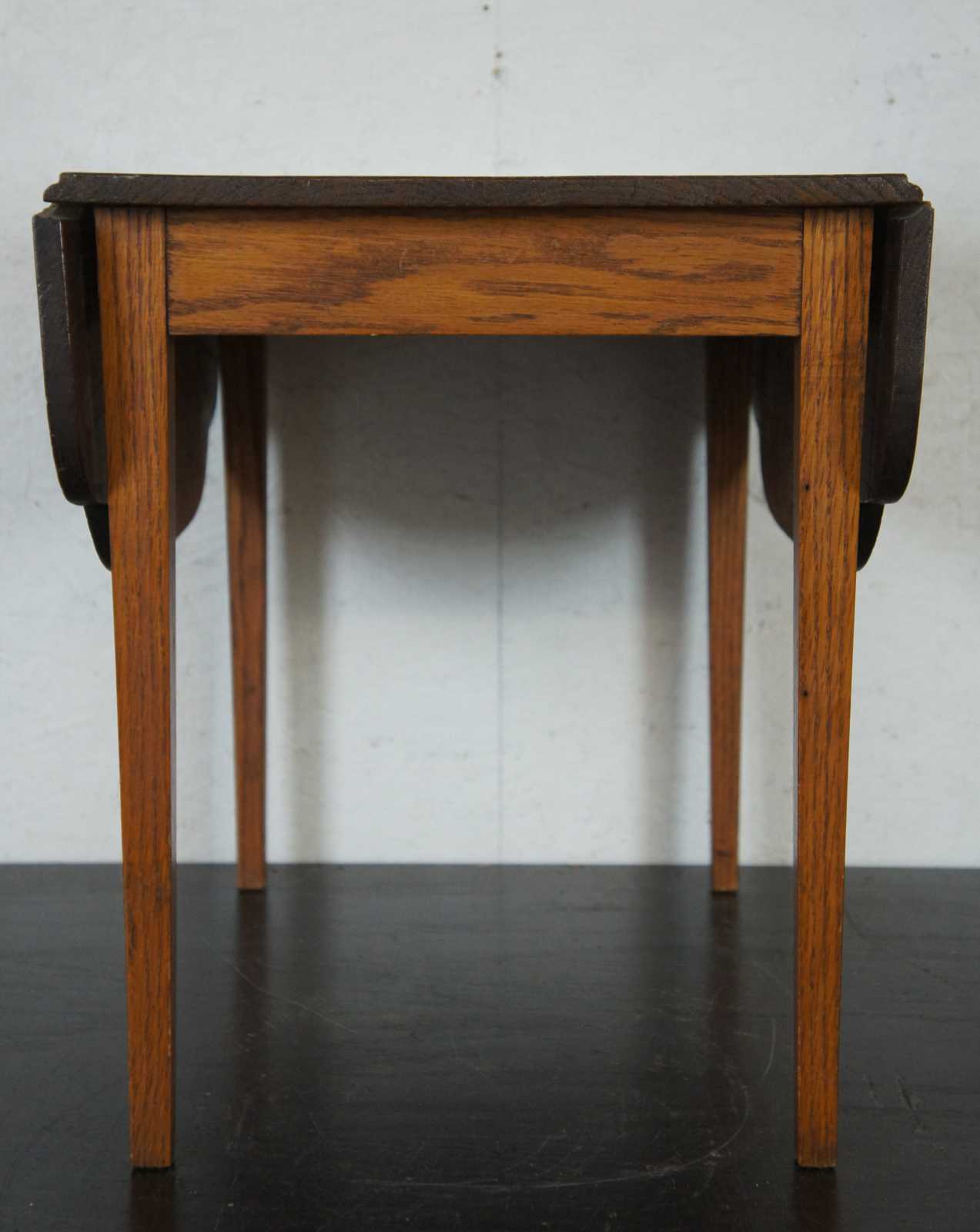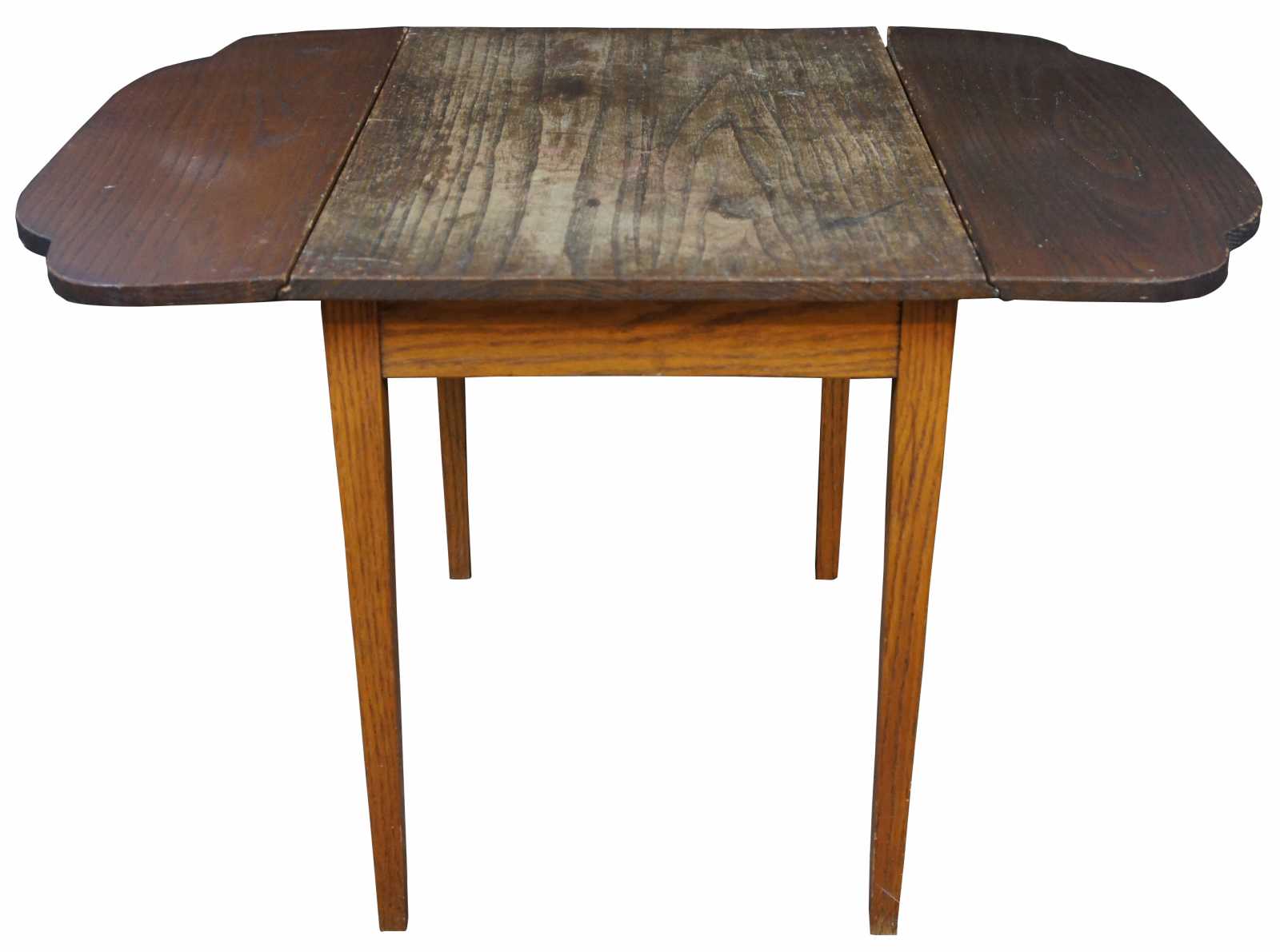 Early 20th century miniature drop leaf table. Shaker style with tapered legs and a serpentine drop leaf. Made from pine.