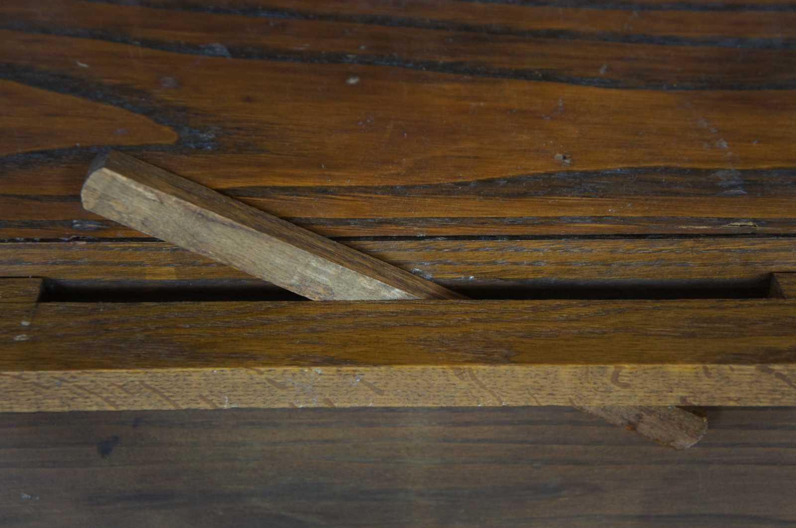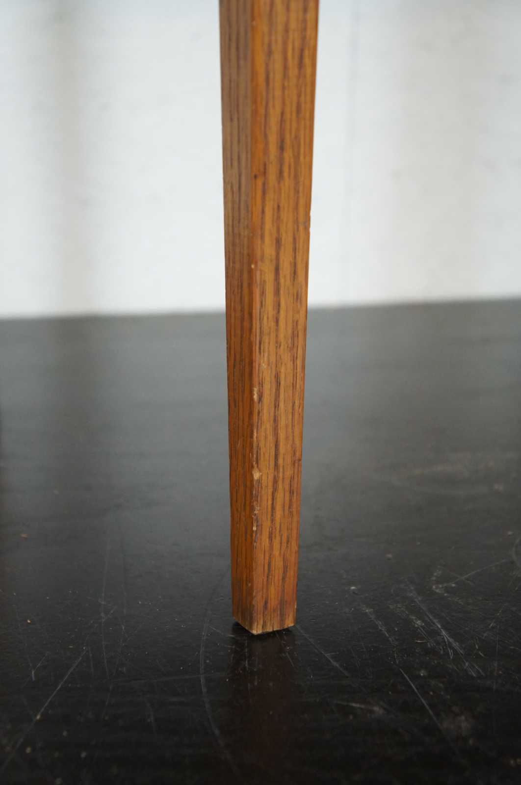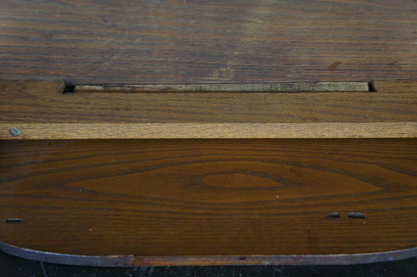 Early 20th century miniature drop leaf table. Shaker style with tapered legs and a serpentine drop leaf. Made from pine.