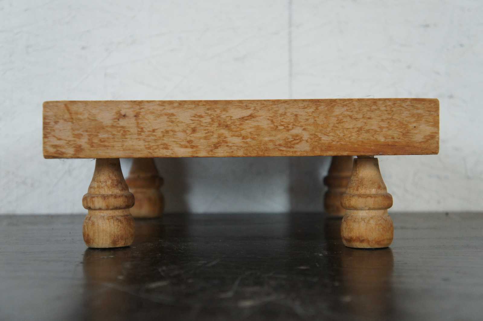 Rustic wood block trivot or board. Great for use as a cutting board, hot plate, or for serving guests. Features turned bun feet.