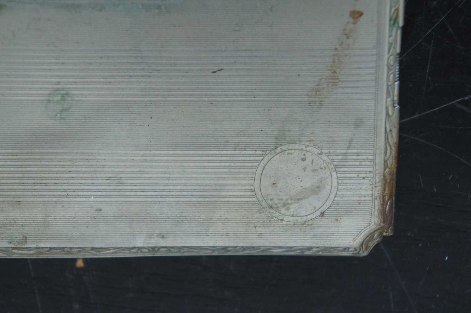 Circa 1920s-30s art deco striped silver plated cigarette case by Elgin America.