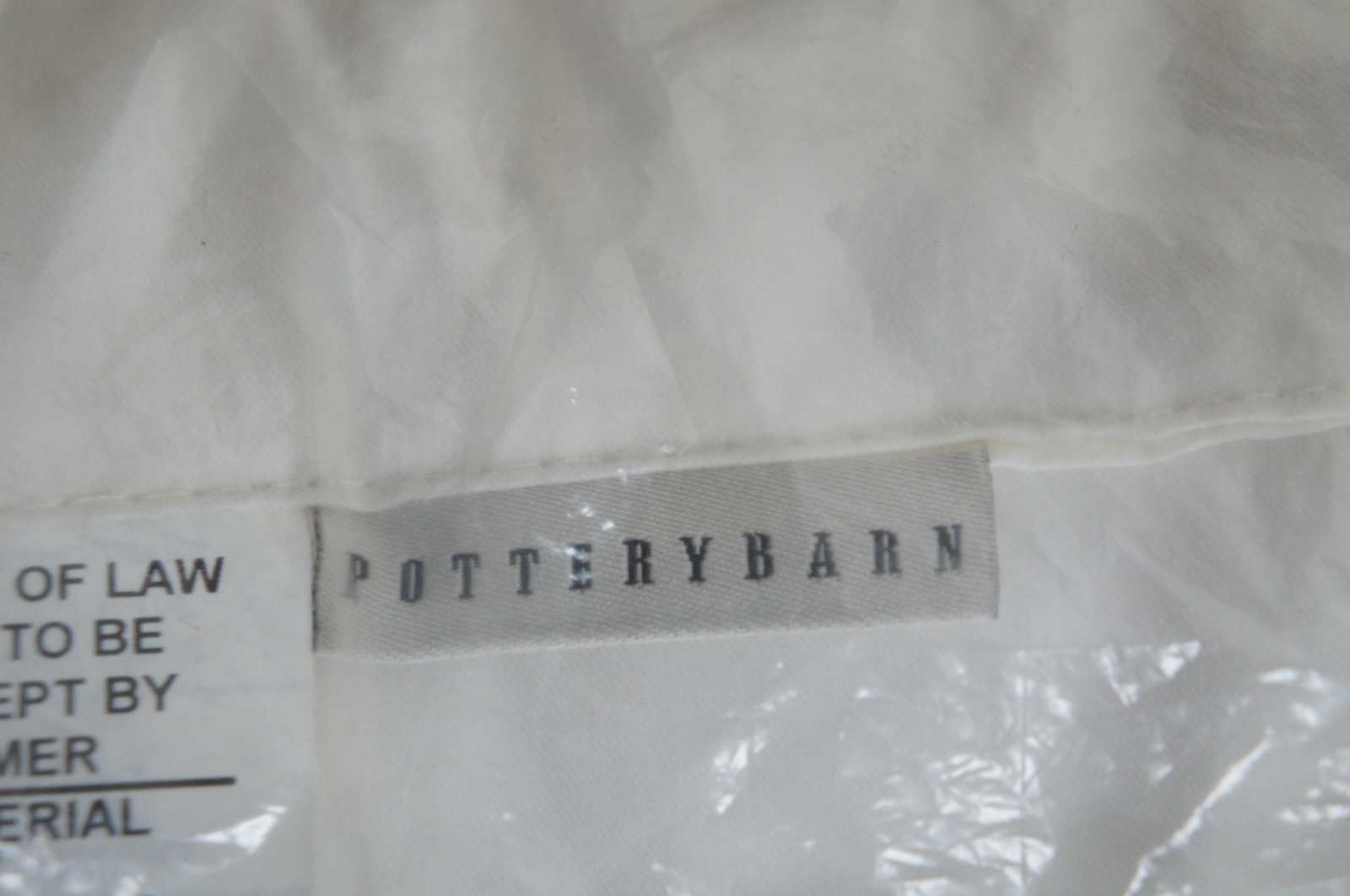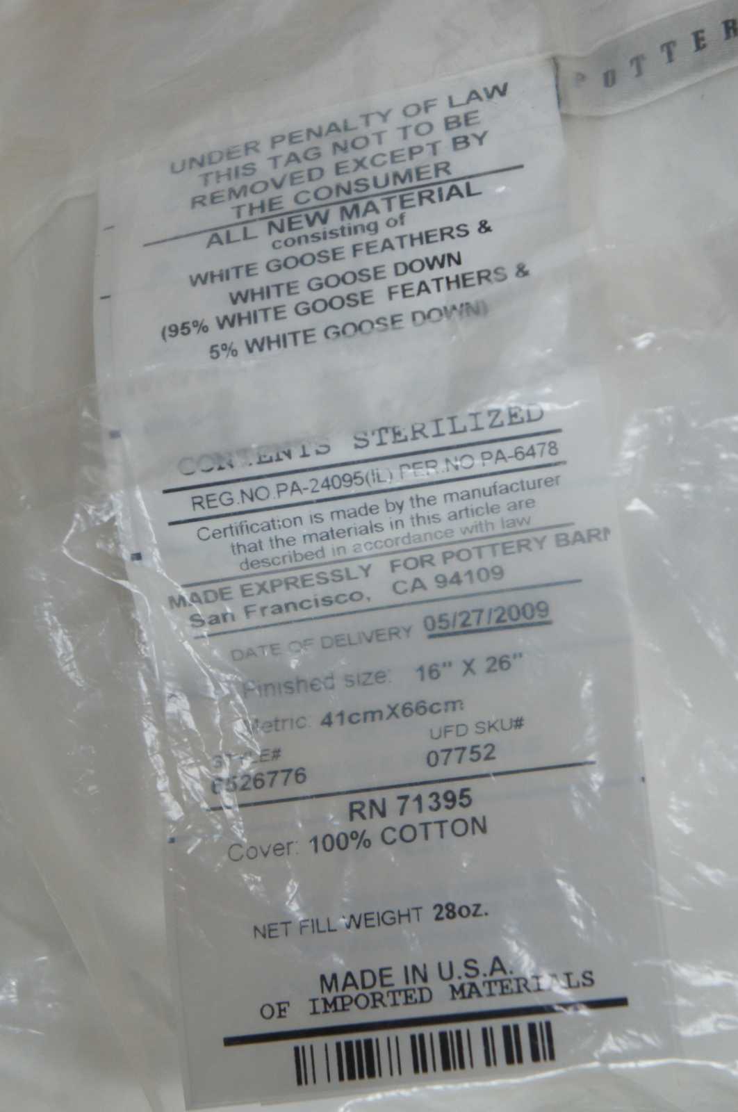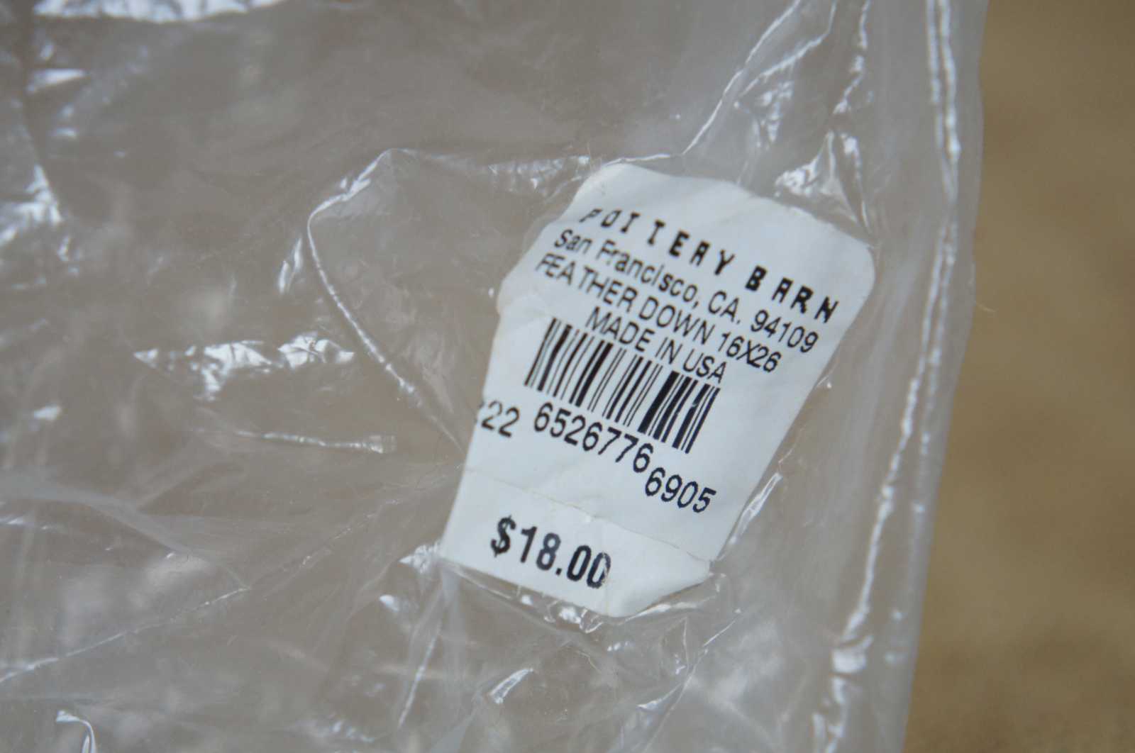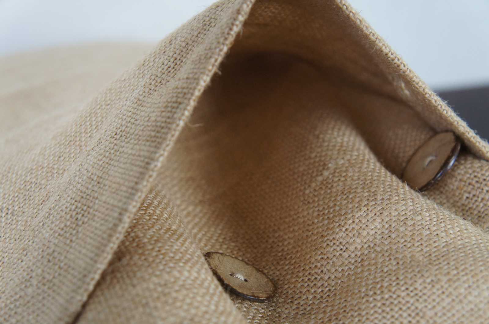 Set of two Pottery Barn unused down filled lumbar throw pillows, with rustic kenaf covers with coconut buttons.