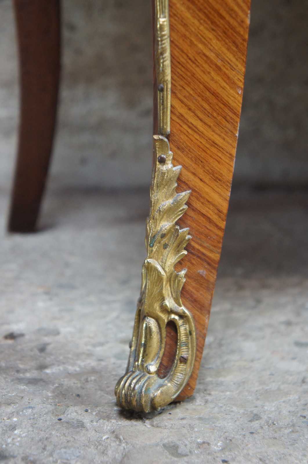 Good antique condition, slightly differing wood tones, wear commensurate with age and use, small chip to back corner of one marble, see pictures.