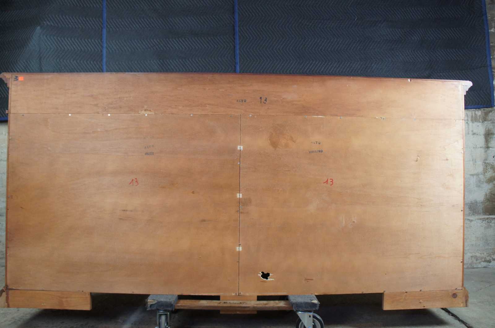 Italian made and traditional inspired cherry sideboard. Features a tall stature with four drawers over lower cabinets. Includes fluted columns between diamond pattern medallions. Could be used as a bookcase, bar back, media cabinet or entry, hallway or dining piece.