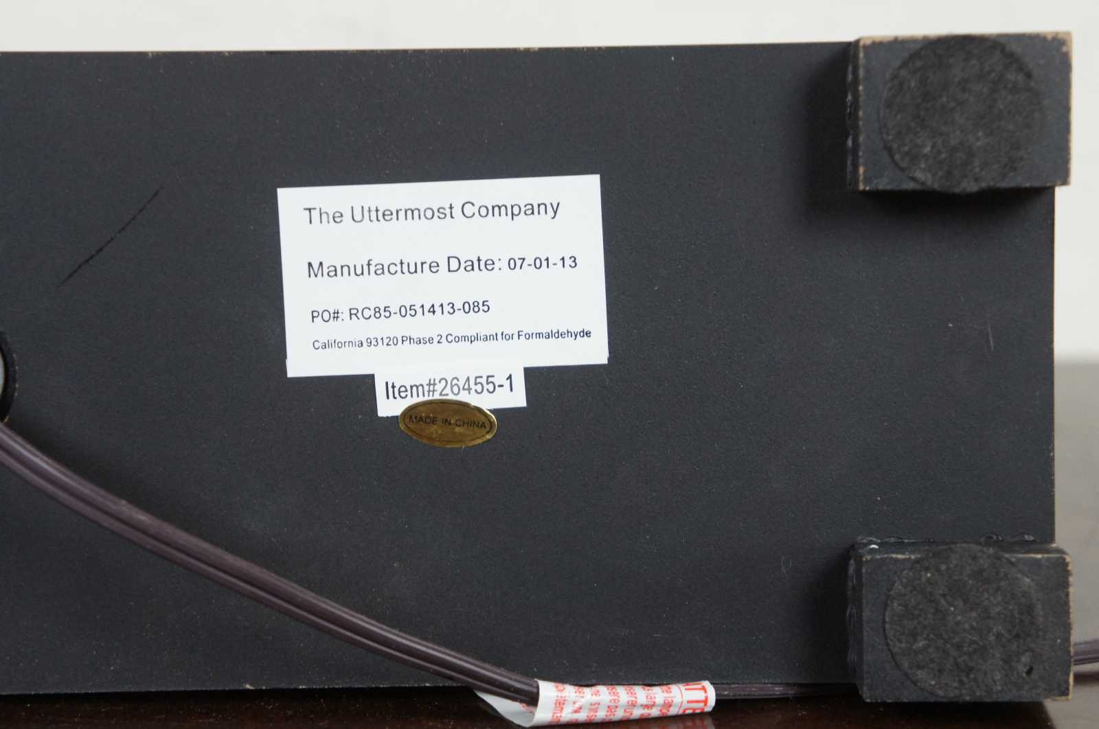 The heavy antiqued ivory glaze on this rectangular table lamp is accented at the top of the base with the application of a dark bronze and rusty orange edge drip. The khaki linen lamp shade is a perfect foil for this piece which will sit nicely on an end table.. Style 26455-1, Adelanto.