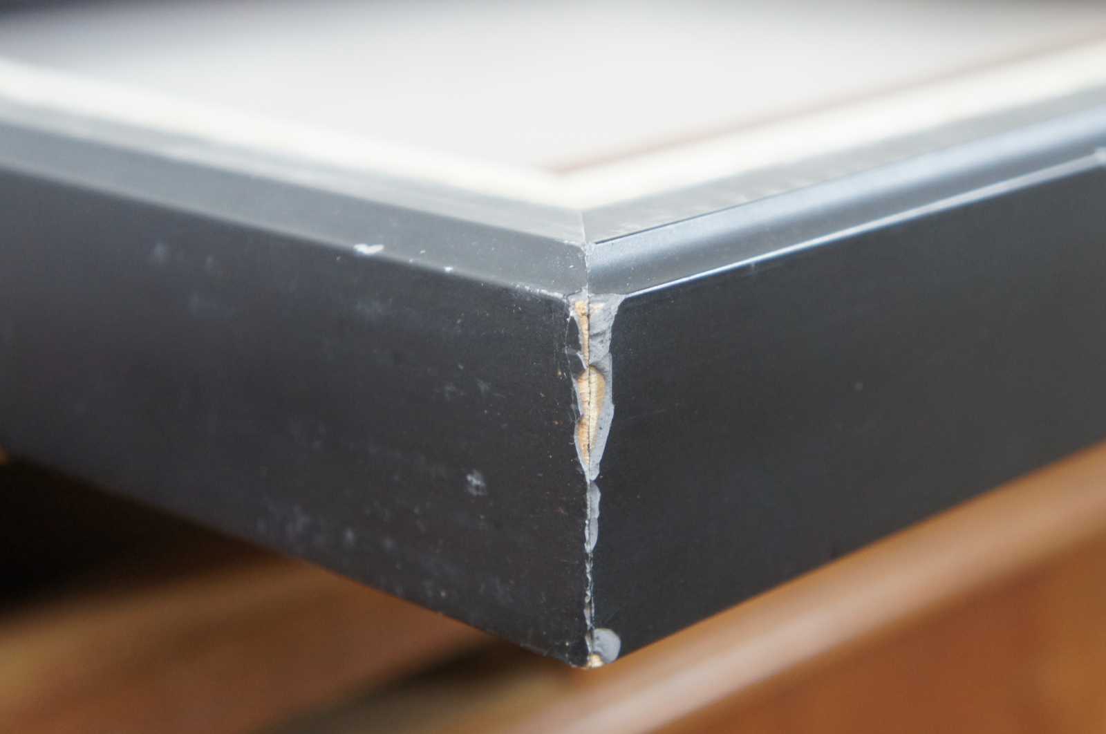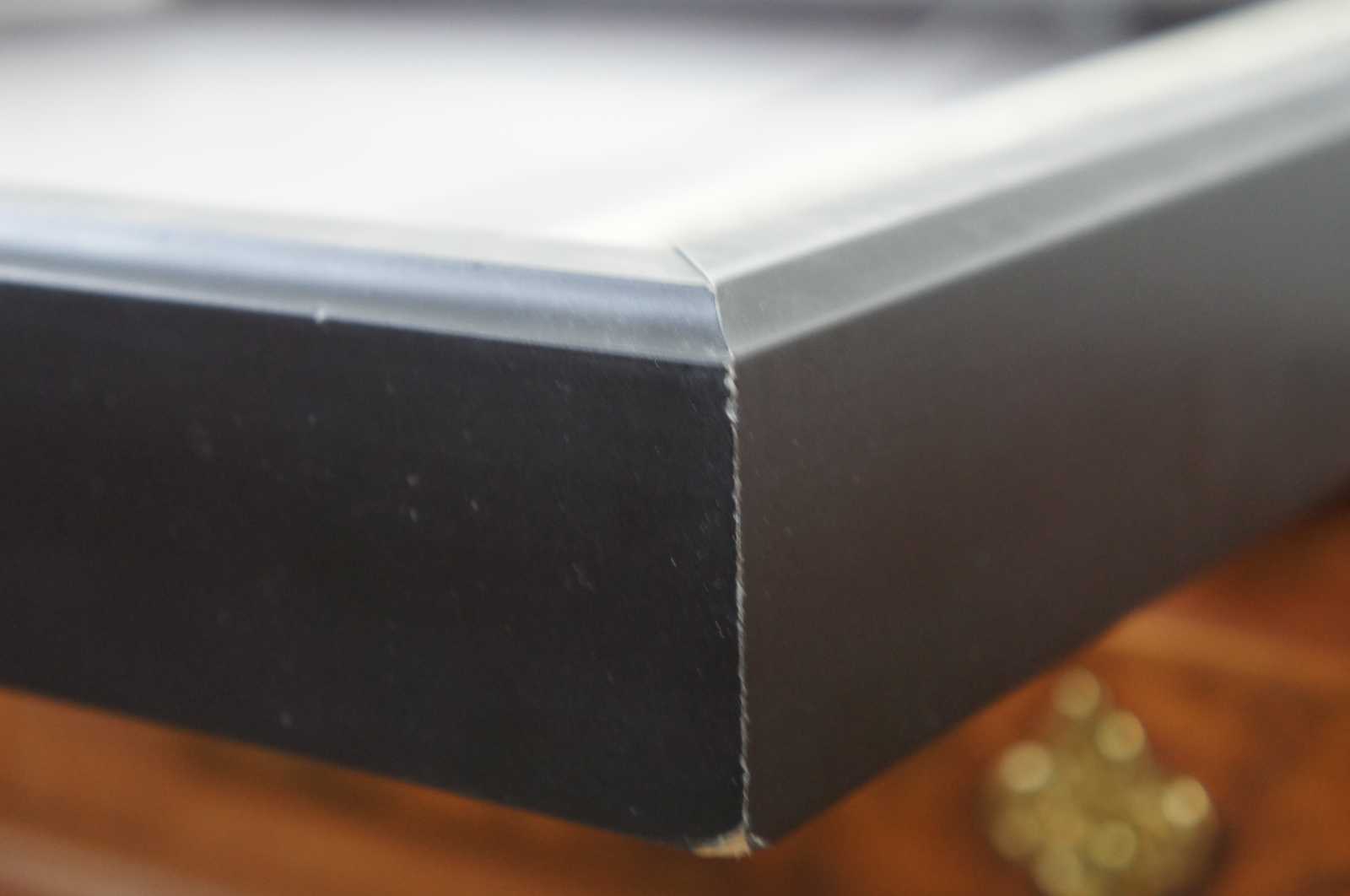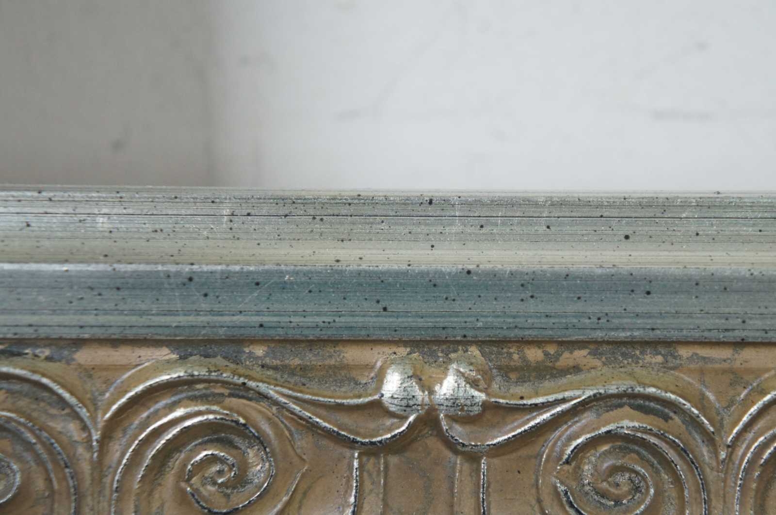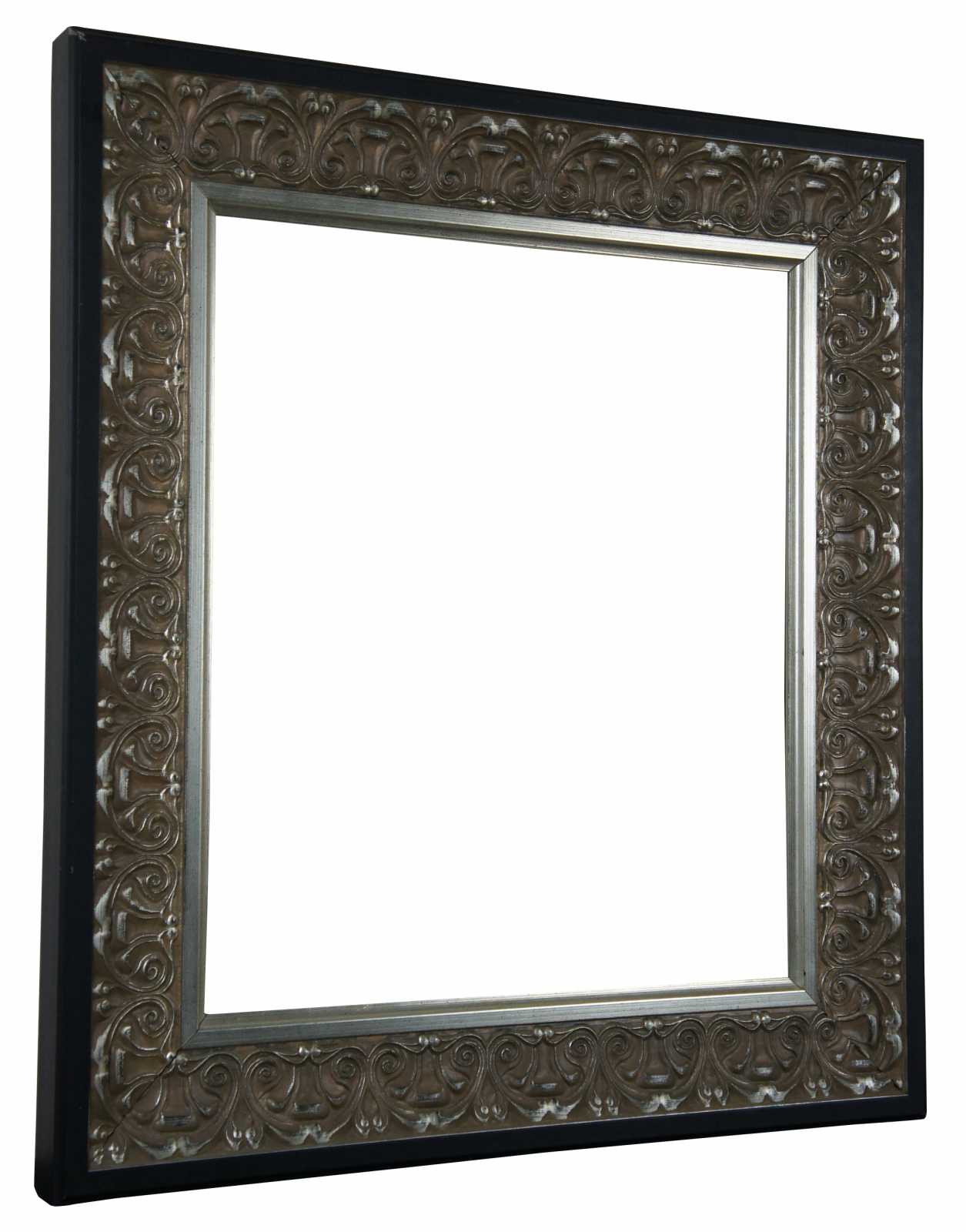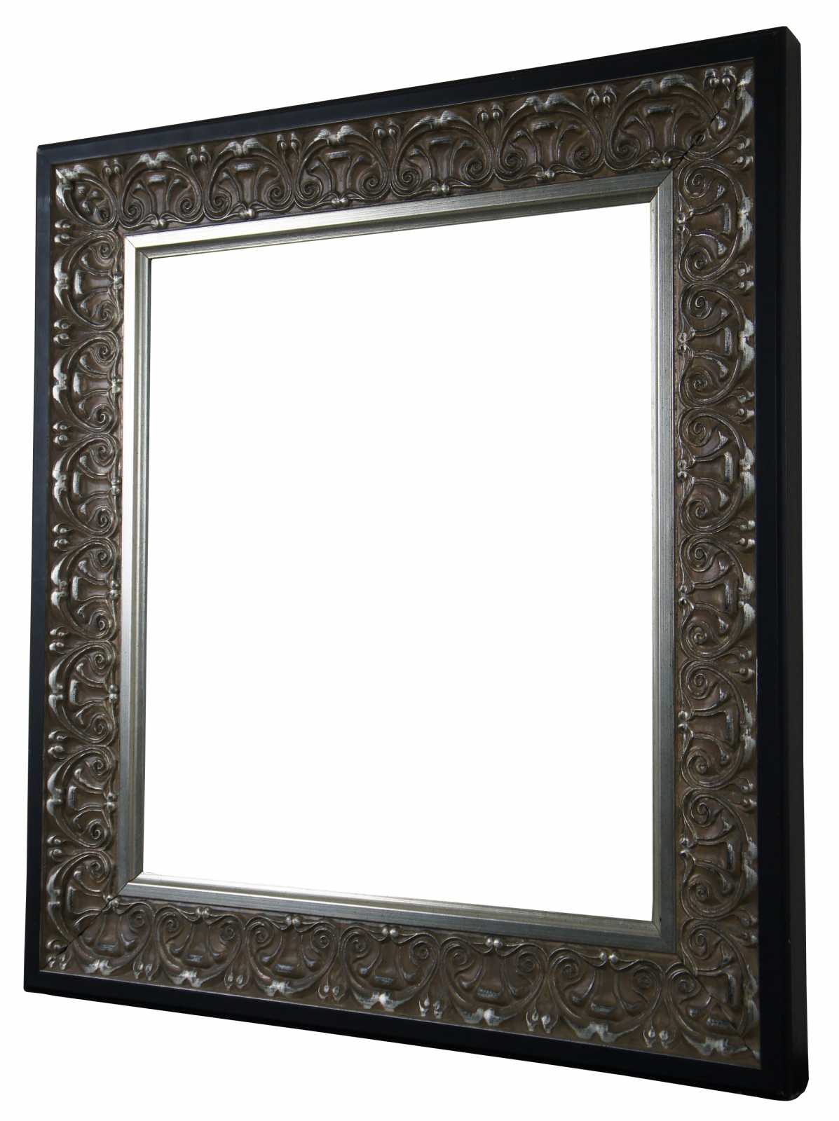 Rectangular wood picture frame with a black border and a floral motif in brushed champagne gold and silver gilding.