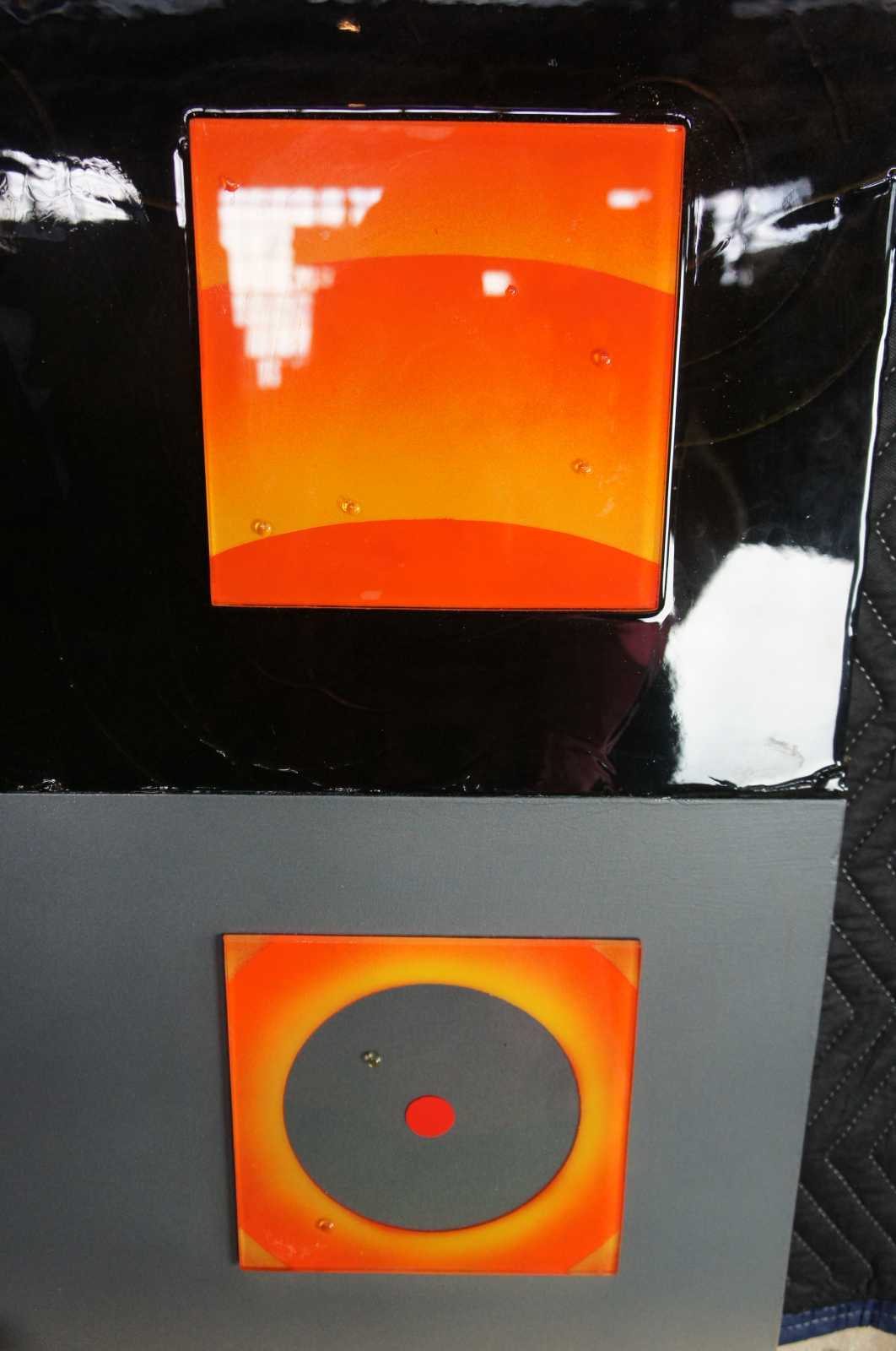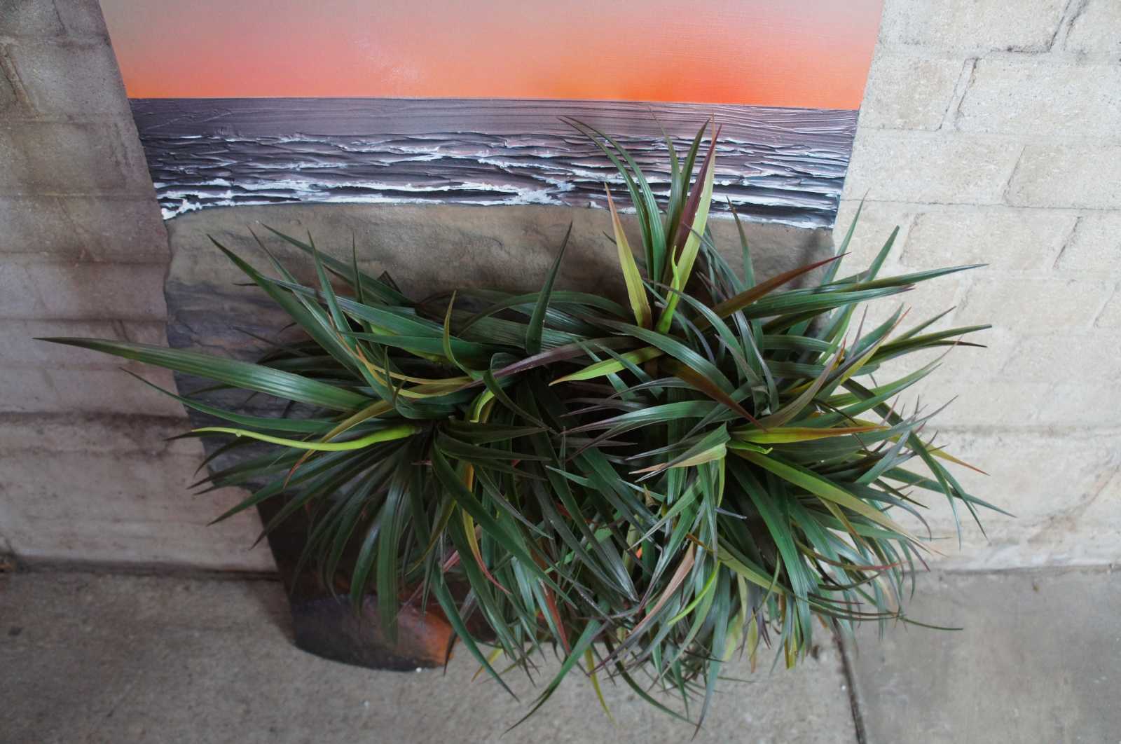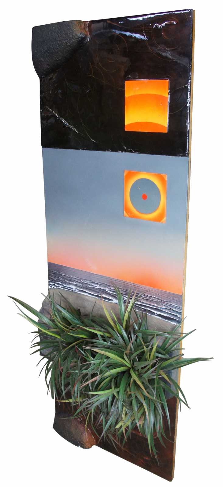 Dike Blair original mixed media artwork, Made from glass, masonite, epoxy, styrofoam, hydrostone, plaster, photograph, plixiglass, arcylic, enamel, sand and artificial plant. Showcased in the Whitney Museum of American Art circa 1987 at The New Romantic Landscape Exhibit in New York City. Titled ""+"" (Yucca).