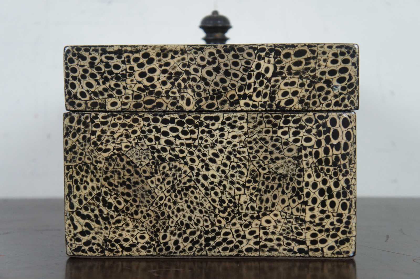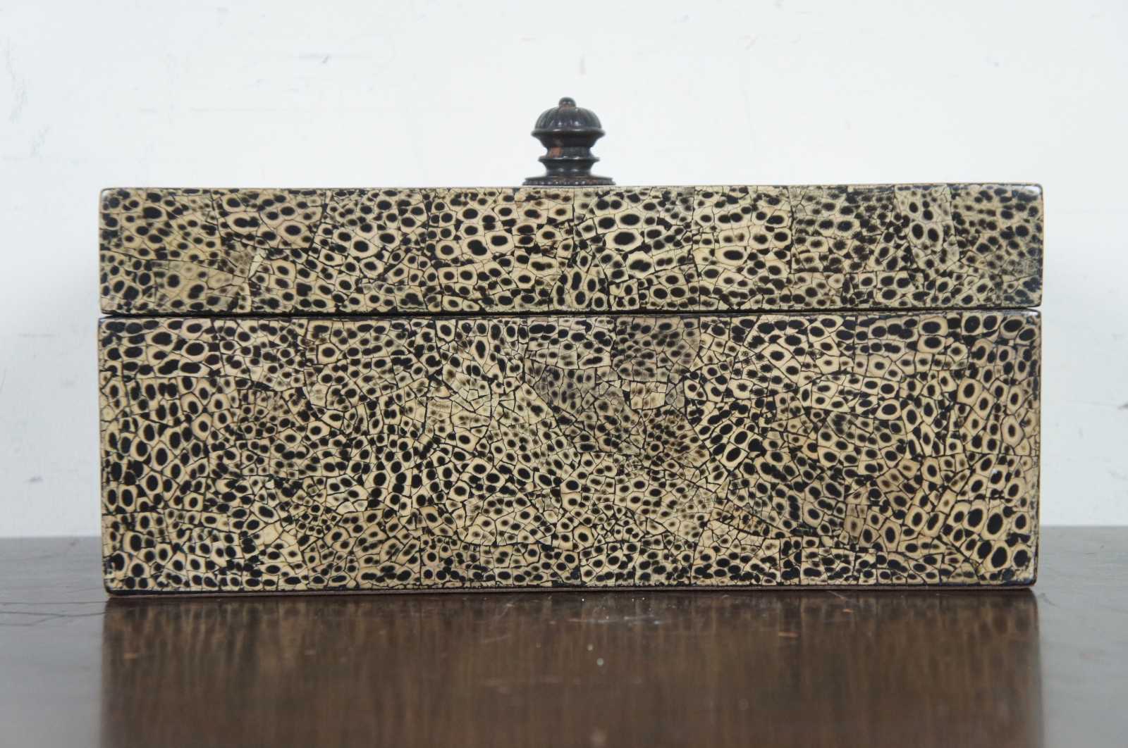 Beige and black faux shagreen snakeskin sytle trinket box with lacquered finish and black interior by Maitland-Smith.