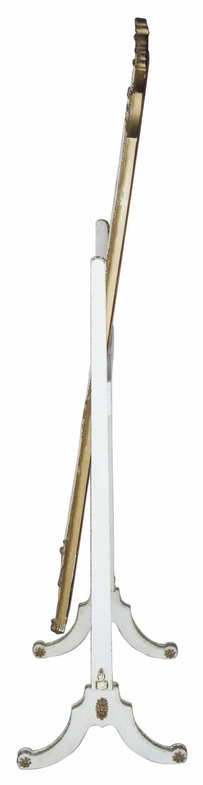 Antique circa 1940s French Provincial Cheval mirror. White with scalloped gold trim.