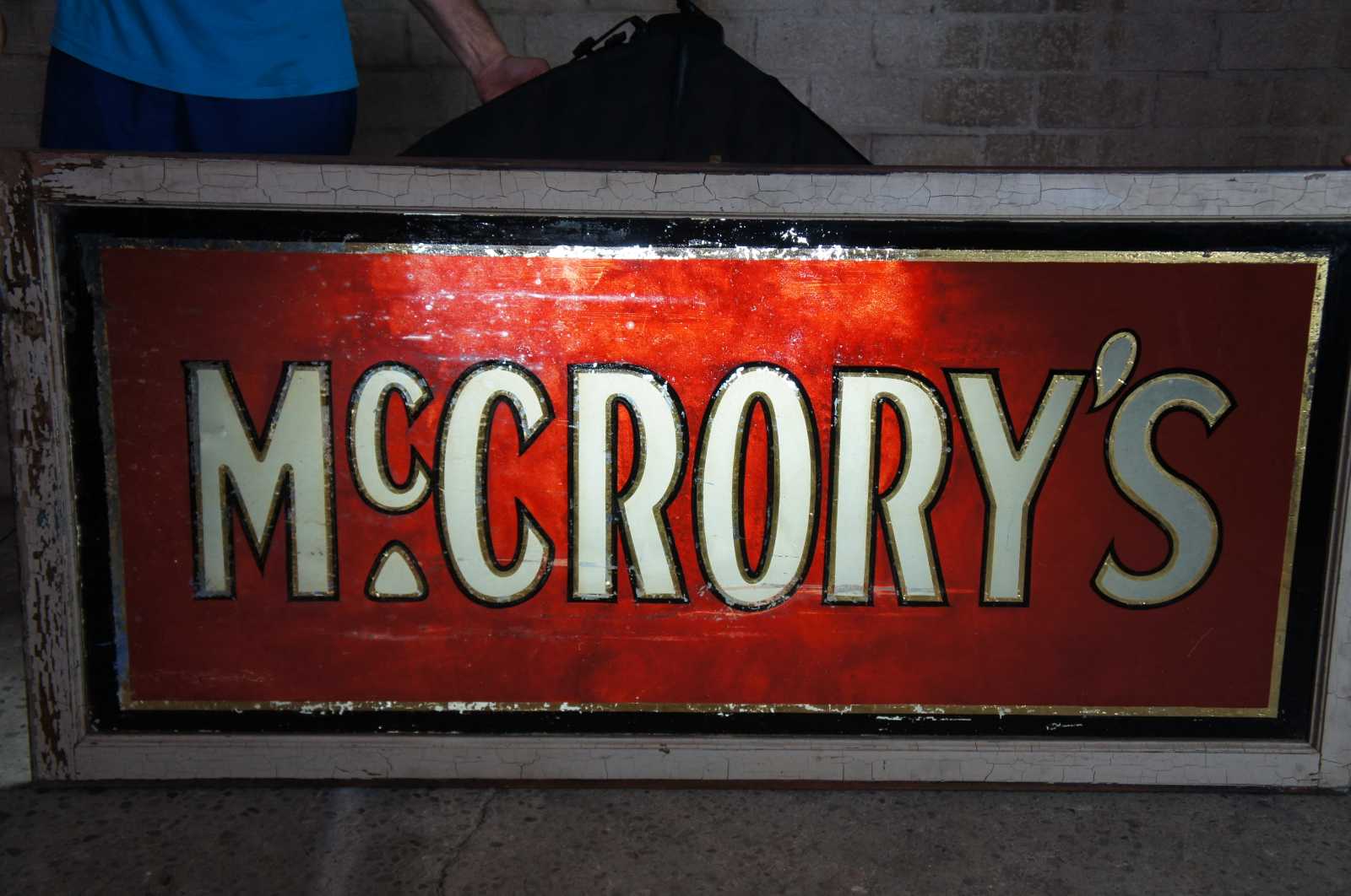 Early 20th century painted mercantile glass window from McCrory's in downtown Dayton Ohio. The original building is being turned into condos and this window was pulled out before demolition. This window was originally a horizontal exterioir front opening window.