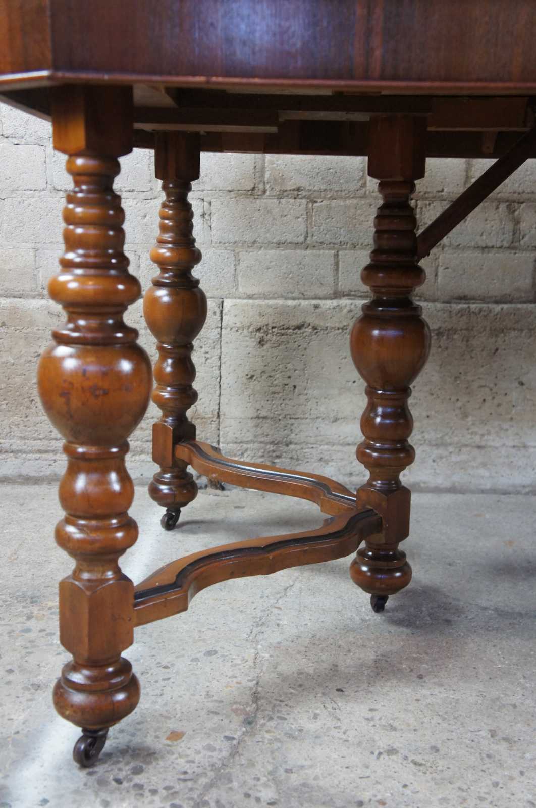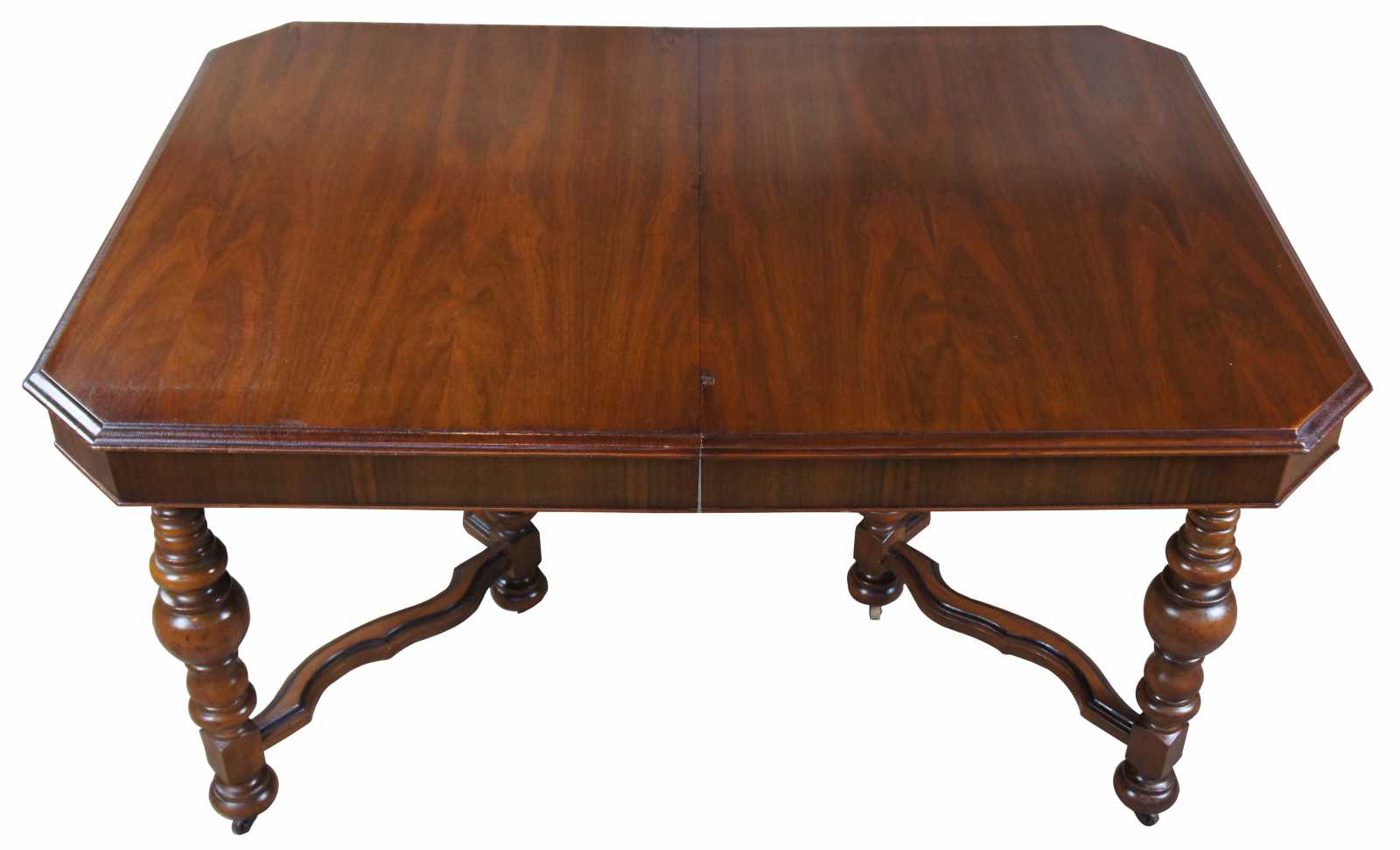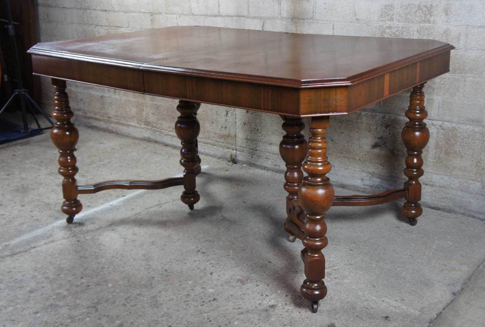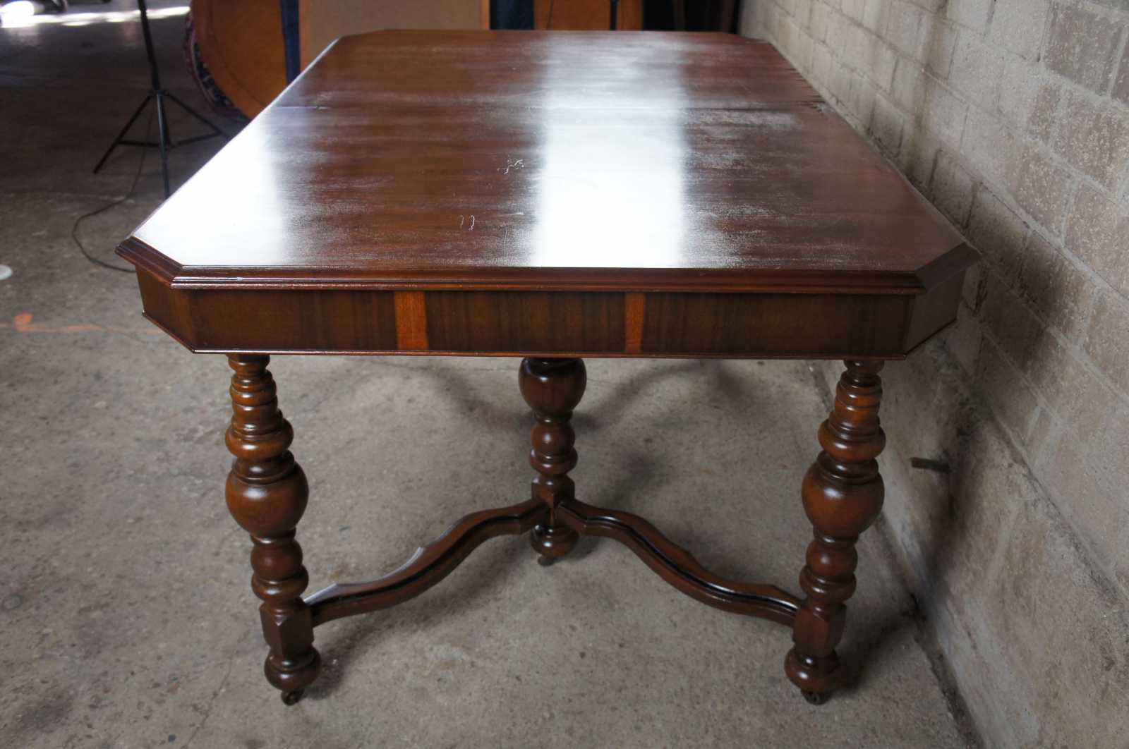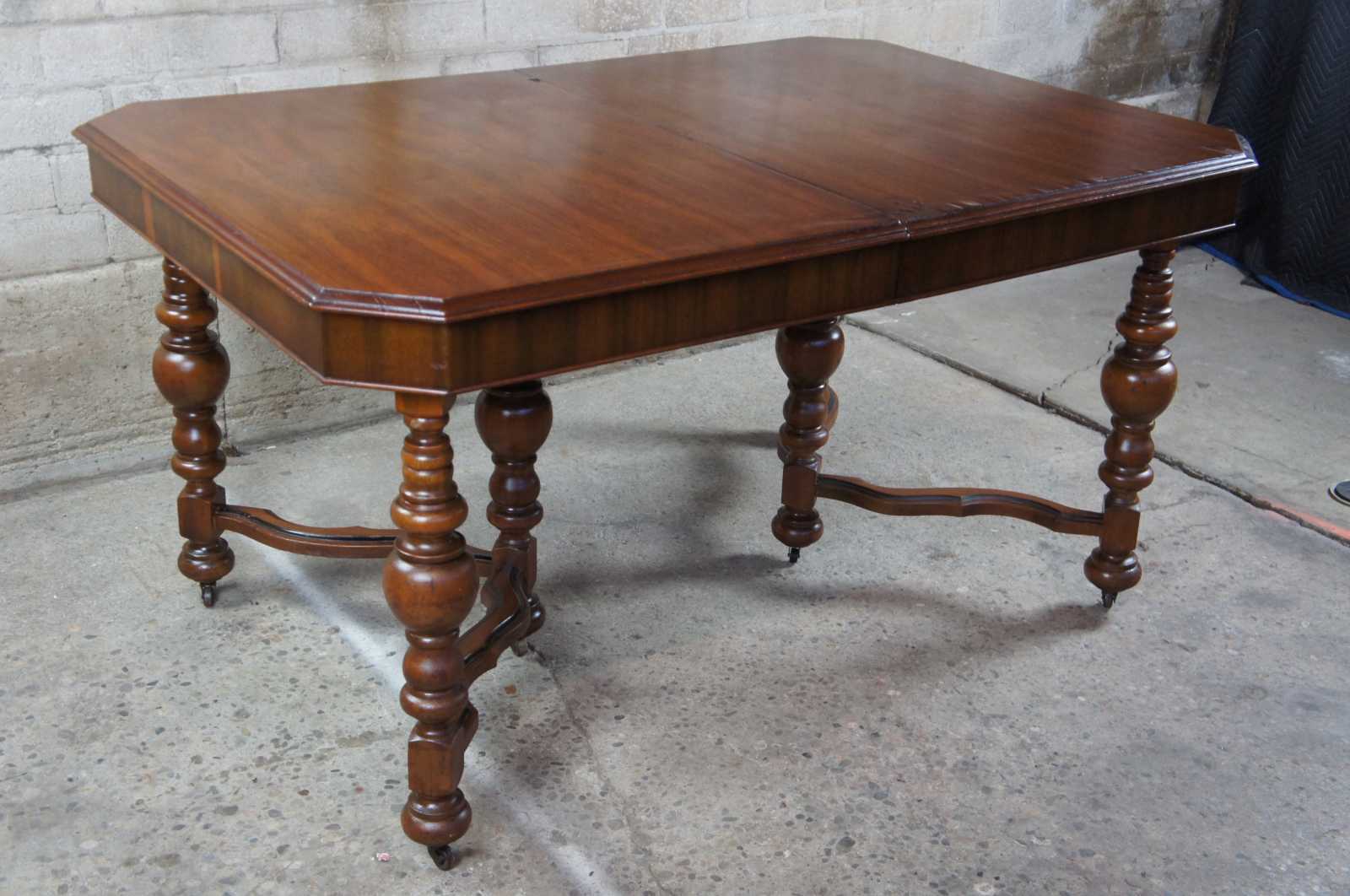 Early 20th century Jacobean style dining table. Made from walnut with turned baluster supports over castors.