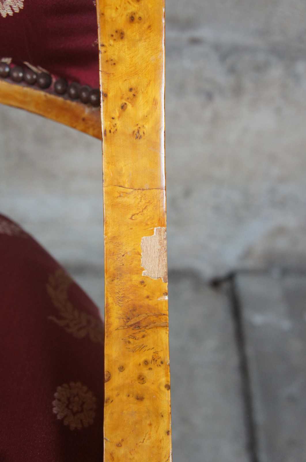 good antique condition, wear commensurate with age; some veneer loss, fraying to fabric, distressing