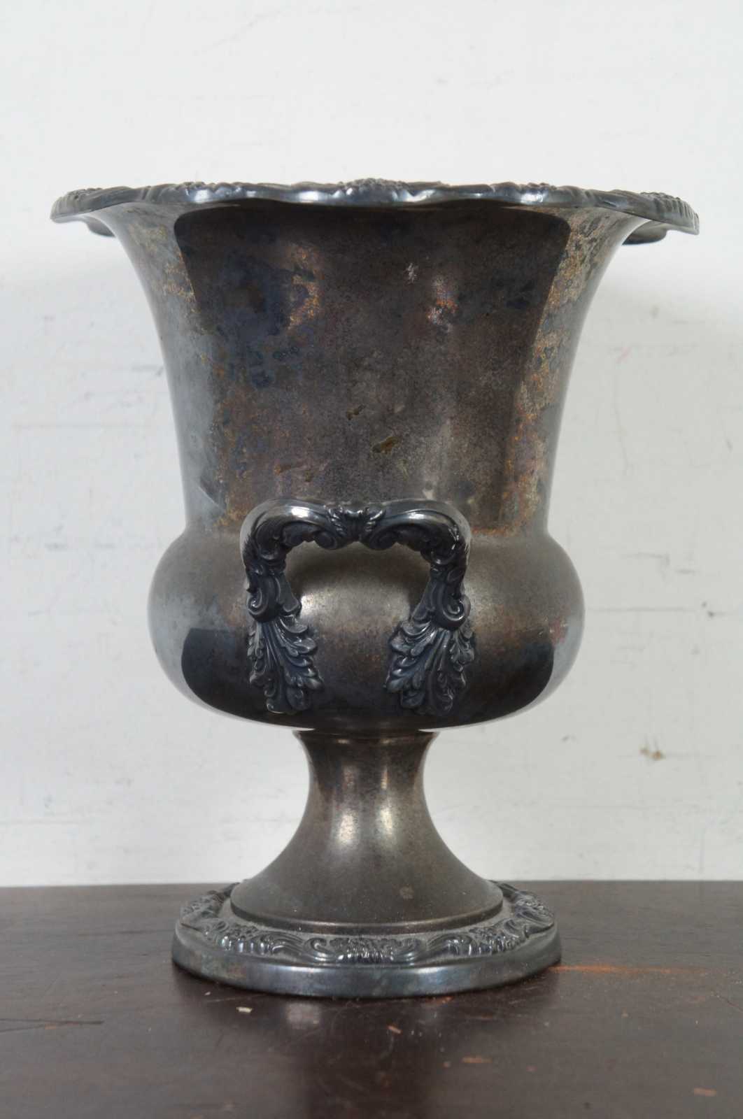 EPCA Poole silver plate footed champagne bucket in the Lancaster Rose pattern with removable tin insert for extra insulation.
