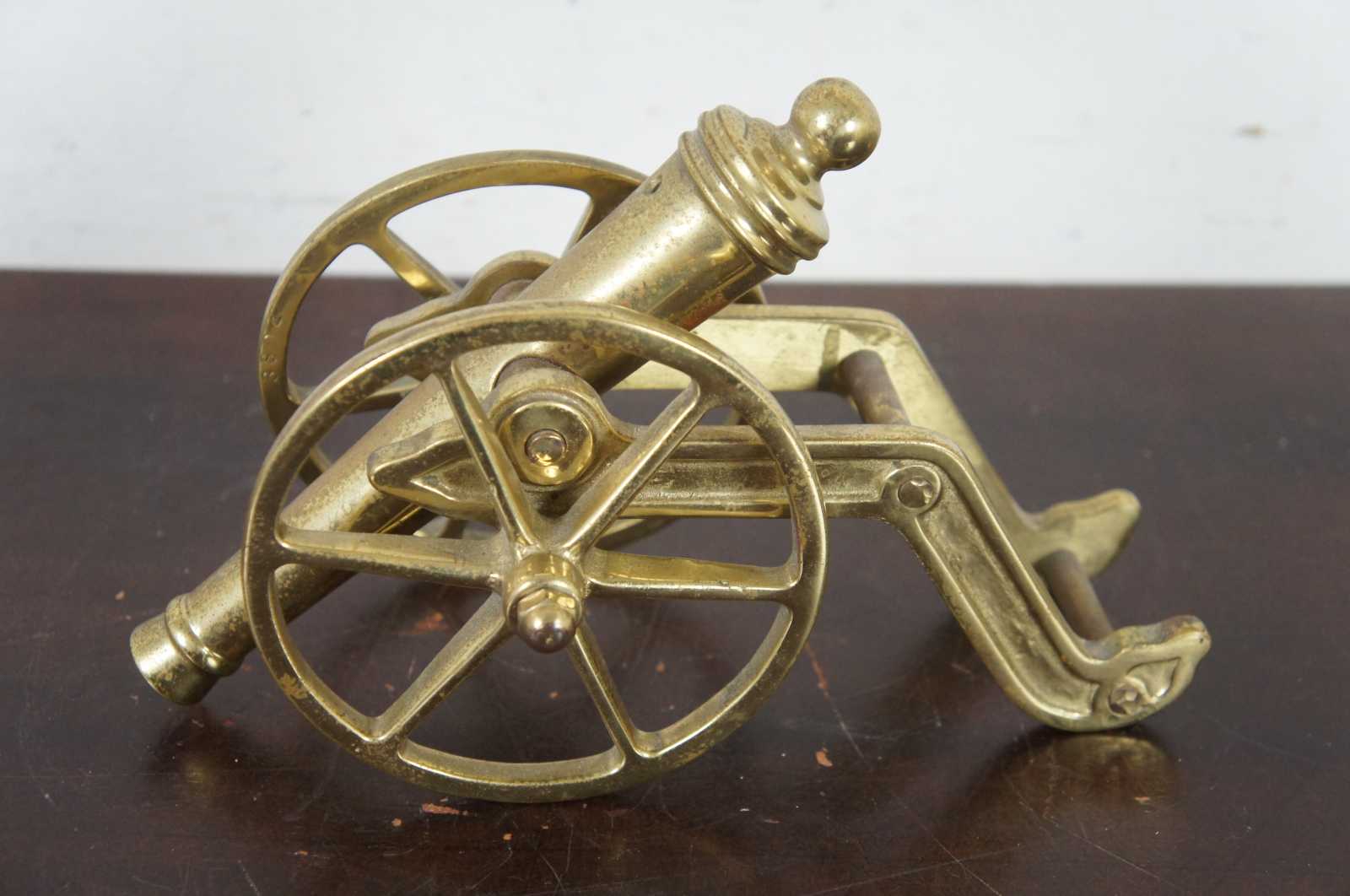 Shiny gold brass, field artillery cannon figurine.