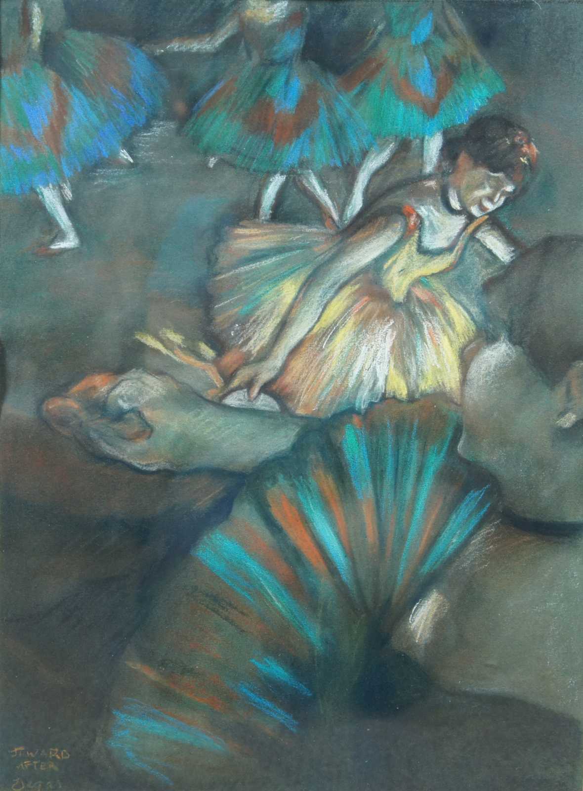 JT Ward After Degas "Ballet Scene from Opera Box" Pastel Painting Dancers 26"