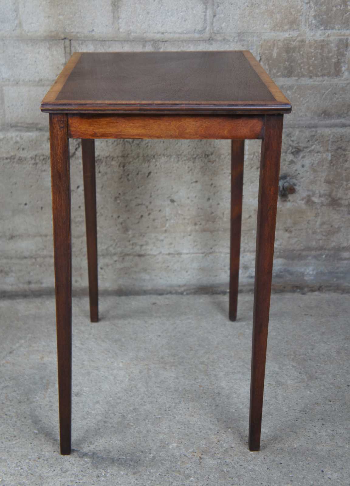 Mid 20th century Sherton / Federal inspired accent table. Made from mahogany with banded top over tapered legs.