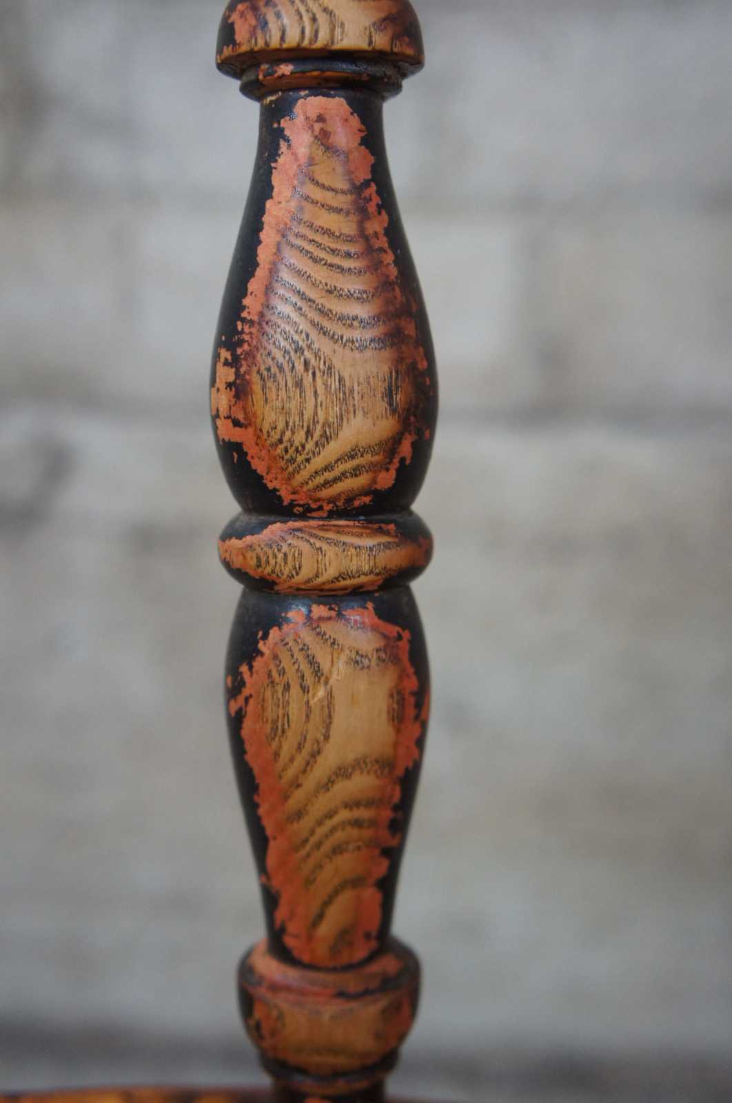 Good overall condition, distressing and heavy wear to finish commensurate with age and use, oak chair has split to seat, see pictures.
