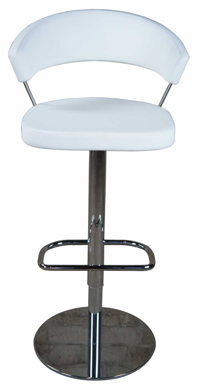 A comfortable, convenient, and contemporary piece for the modern home. The Connubia New York Adjustable Barstool features an optic white leather seat and widely curved backrest accented by a tubular steel frame. Meanwhile, the sleek steel pedestal base adjusts the seat's height (with an easy gas-lift mechanism), allows it to swivel and complements any of the available leather colors with a chromed finish. Choose between a Vera Pella genuine leather upholstery finish.