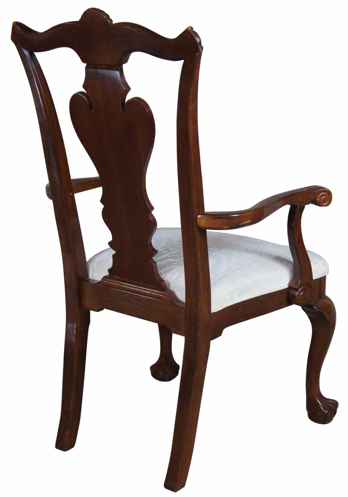 Late 20th century chippendale style chair by Universal Furniture. Made from Mahgoany with a serpentine rail featuring a shell carving over a vase sheaped splat. The chair is supported by cabriole legs leading to ball and claw feet. Manufactured in 1994.