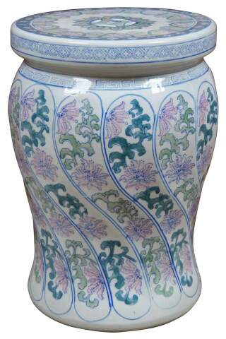 Vintage Chinese Famille Rose Porcelain Painted Lotus Flower Garden Stool